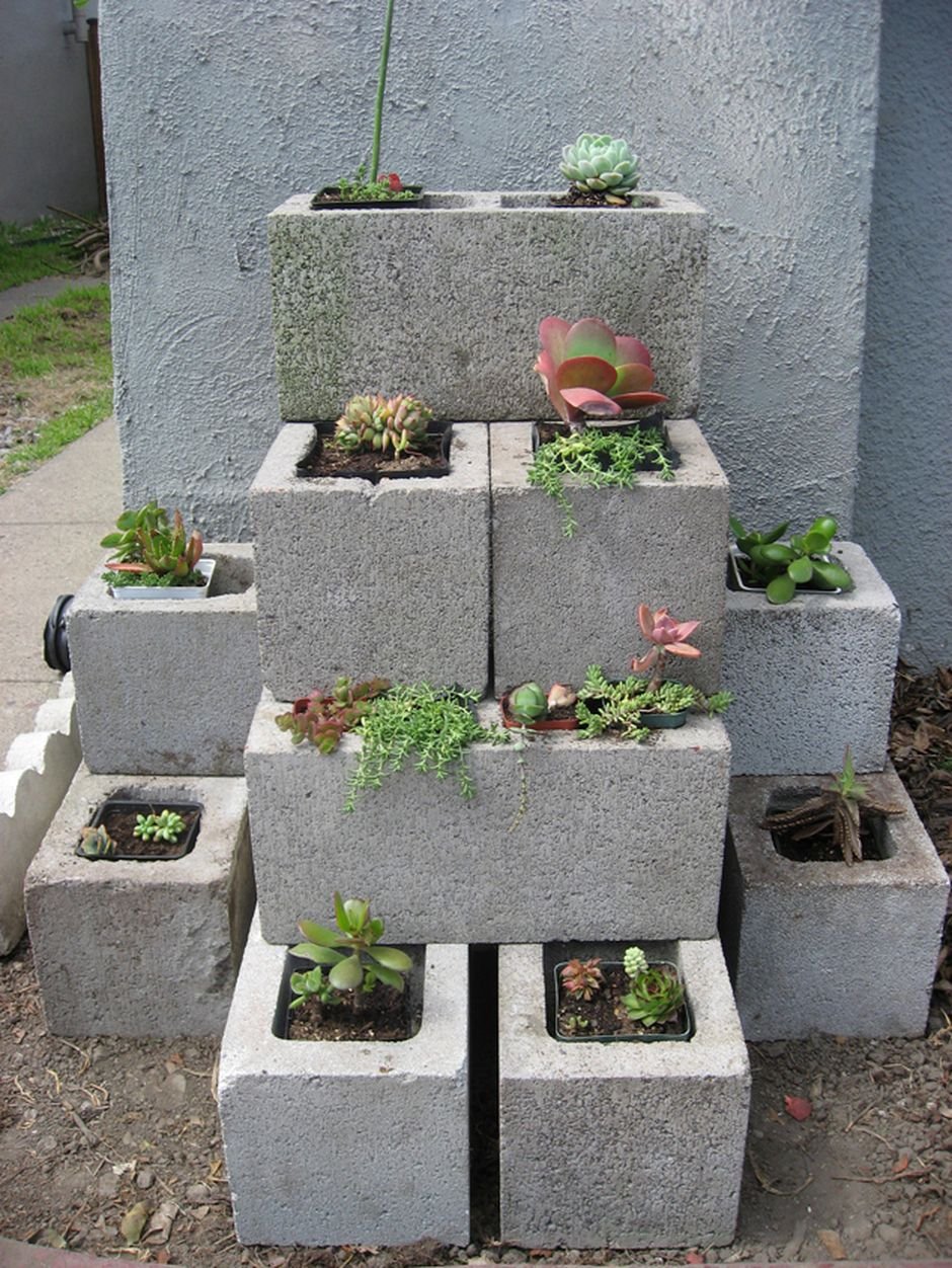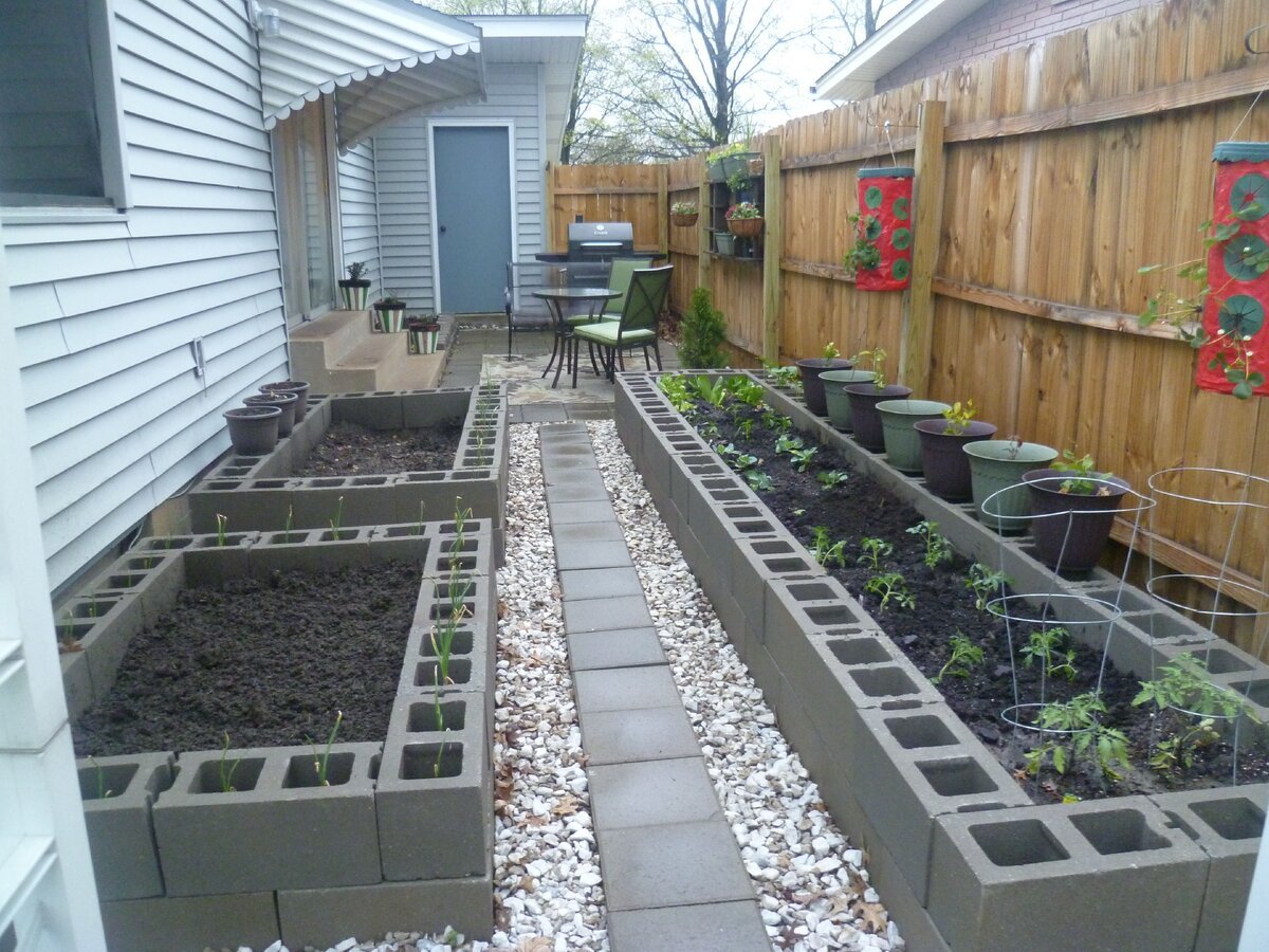 Грядки из бетонных блоков