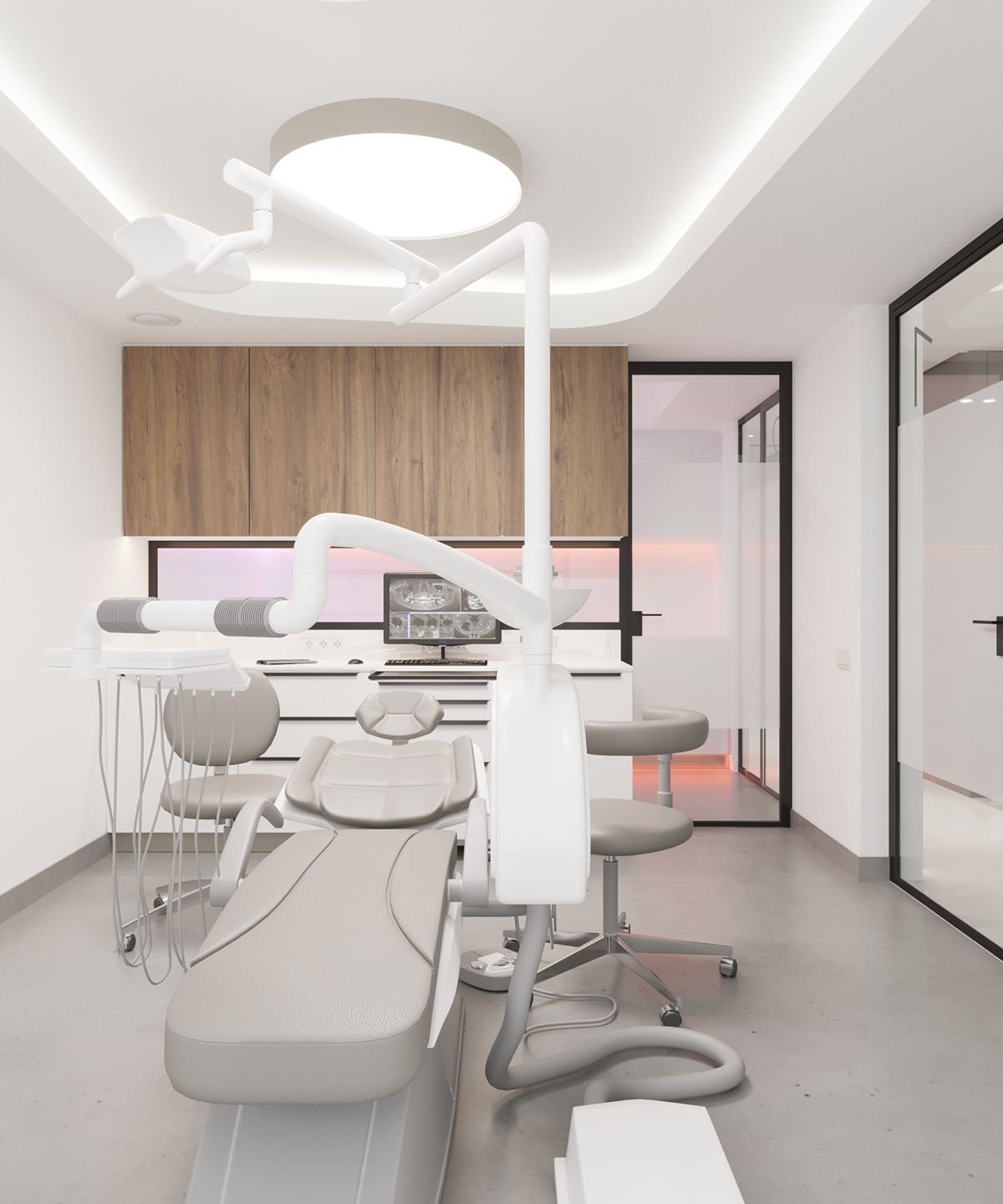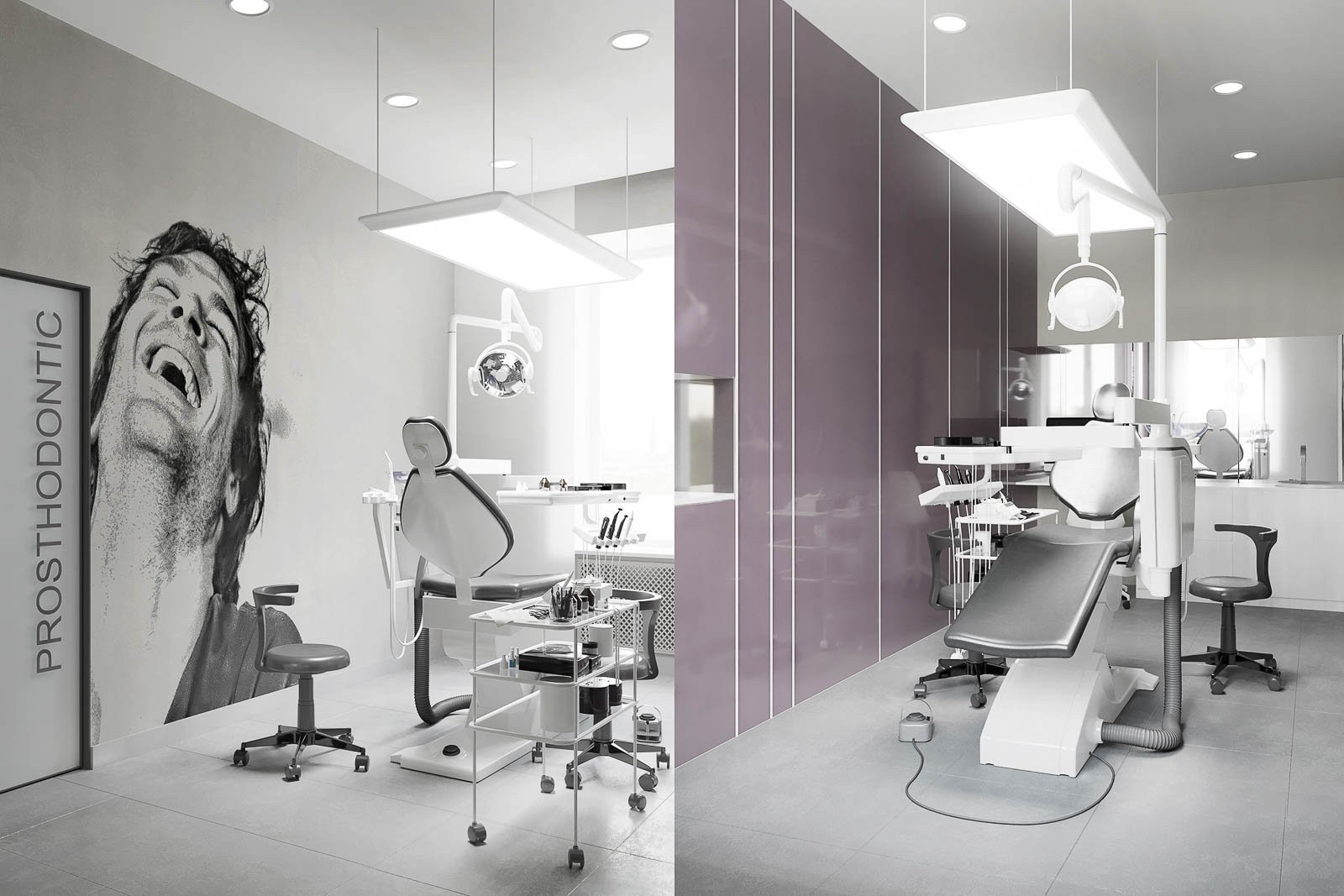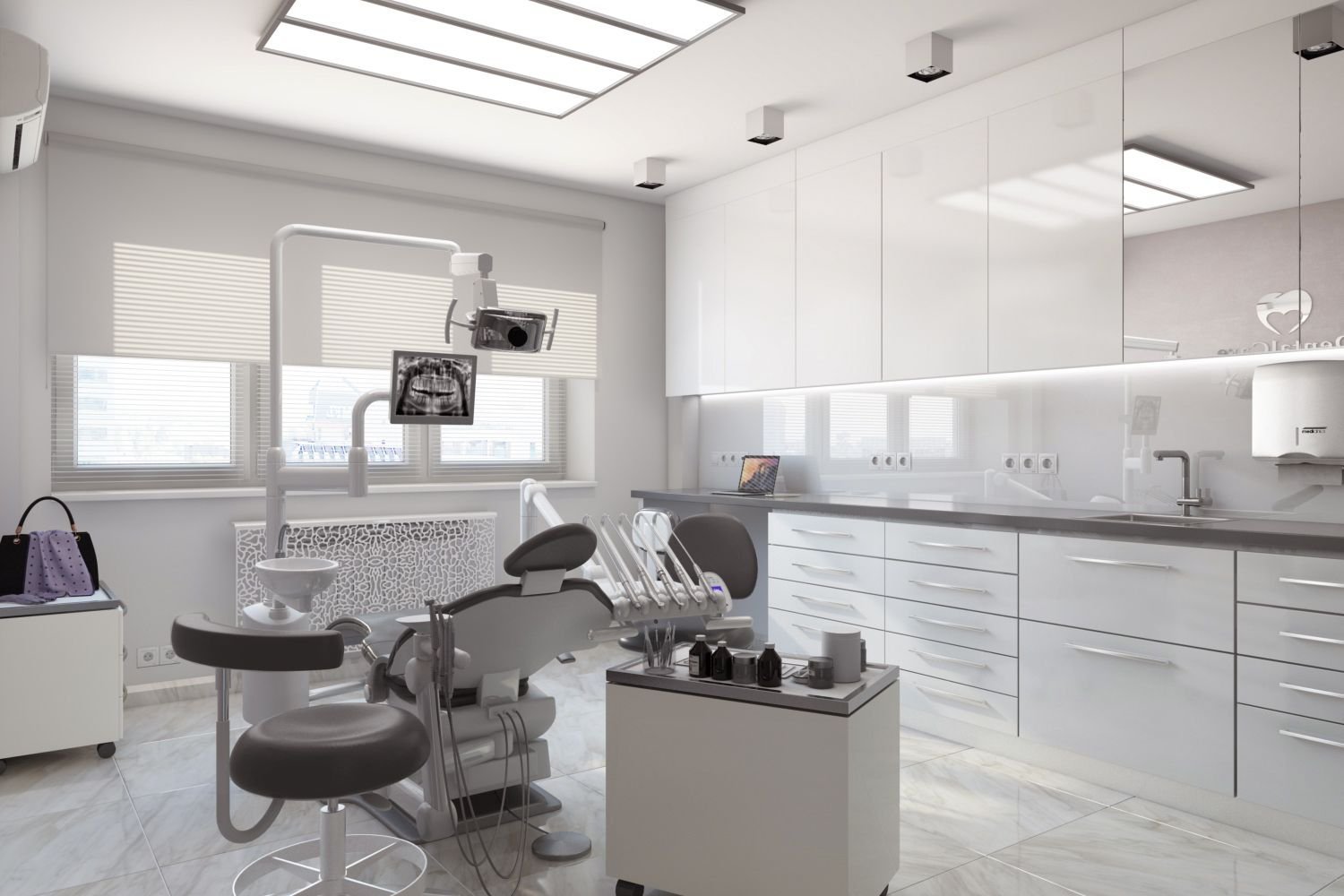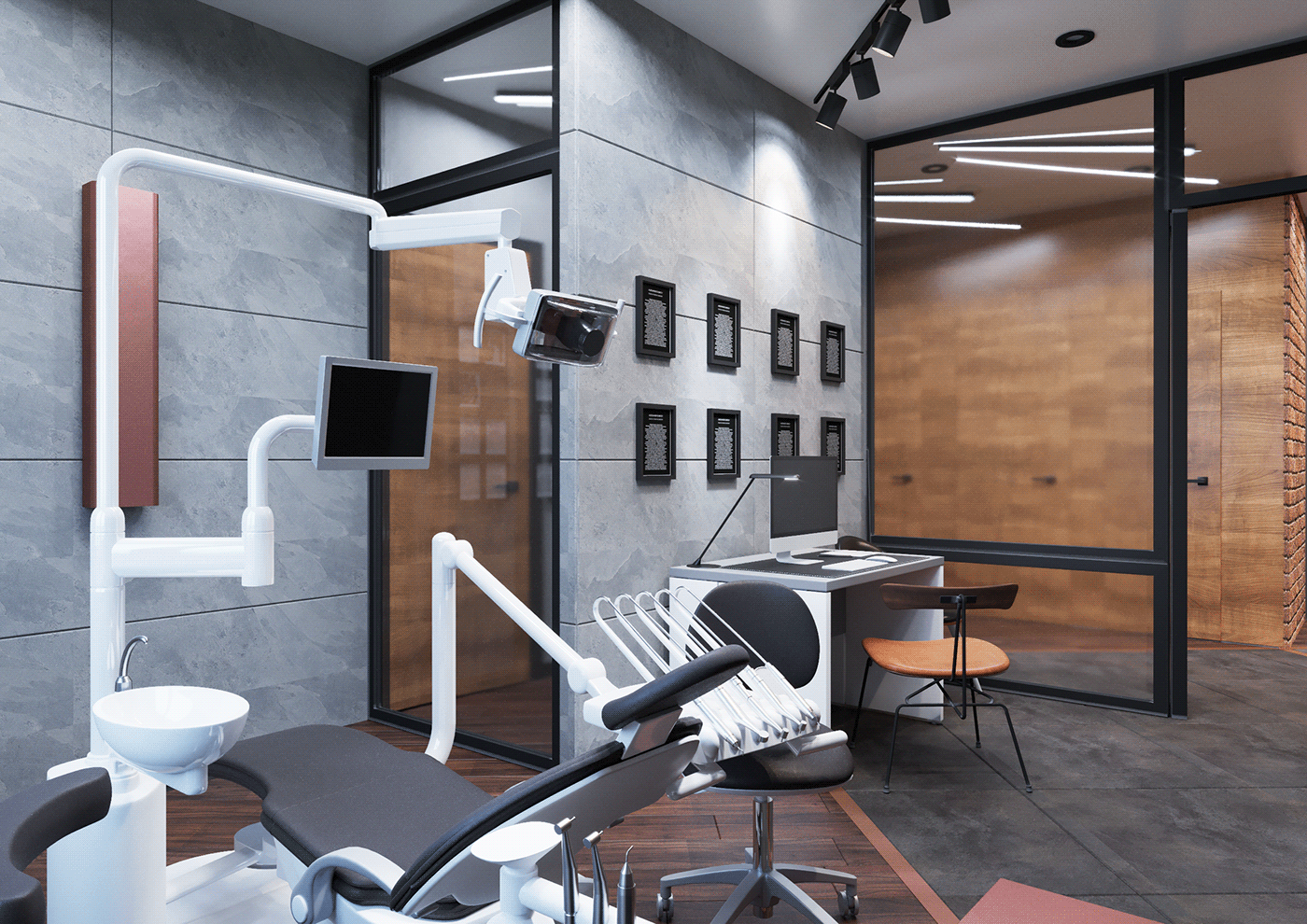 Интерьер стоматологической клиники в серых тонах