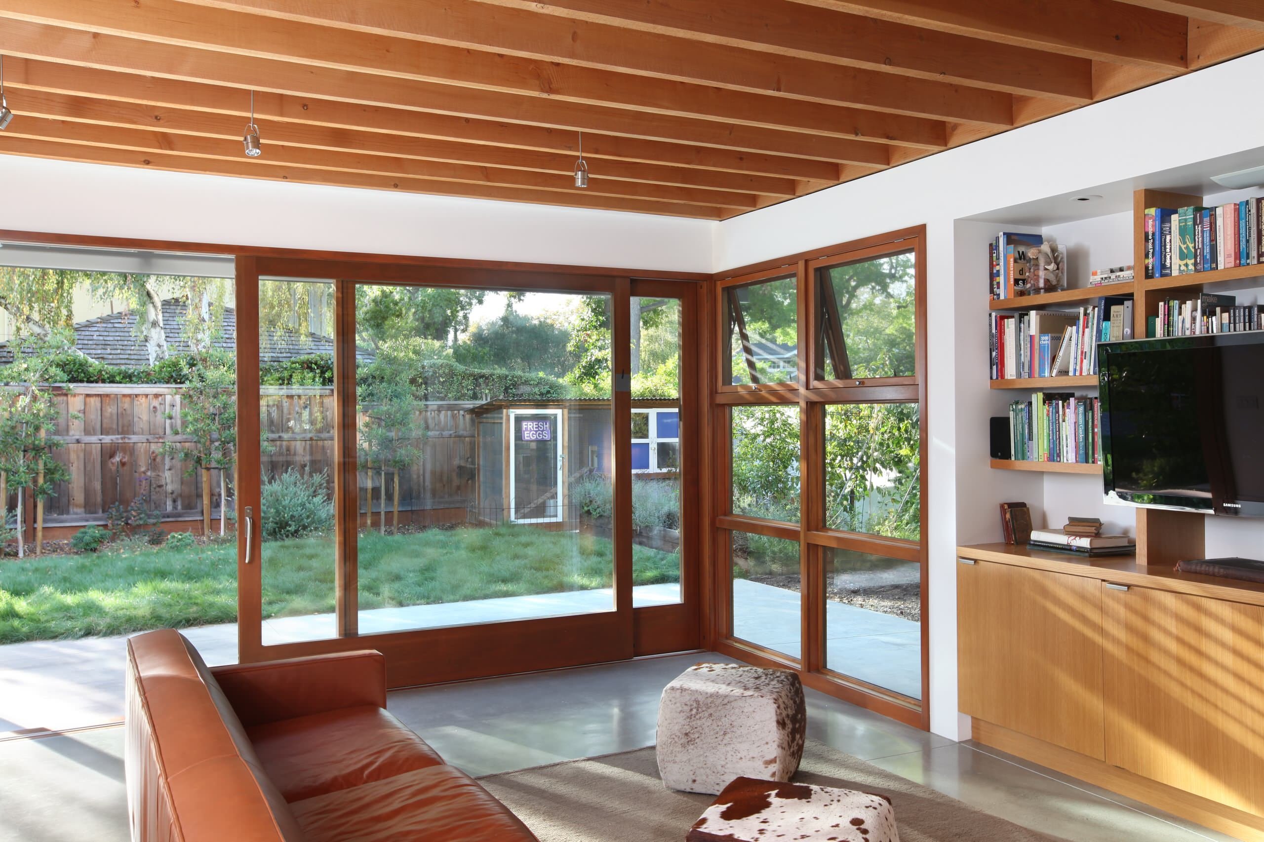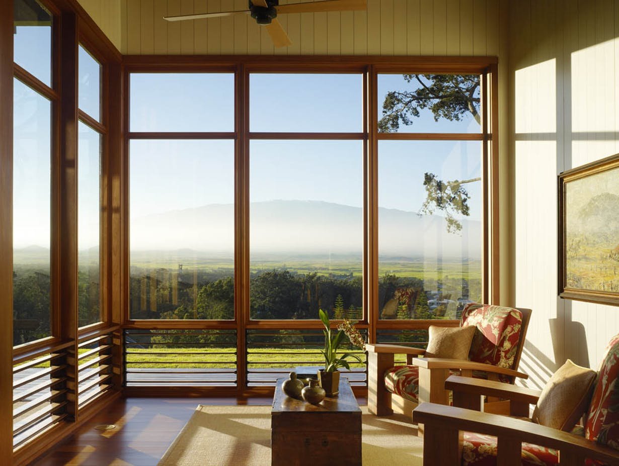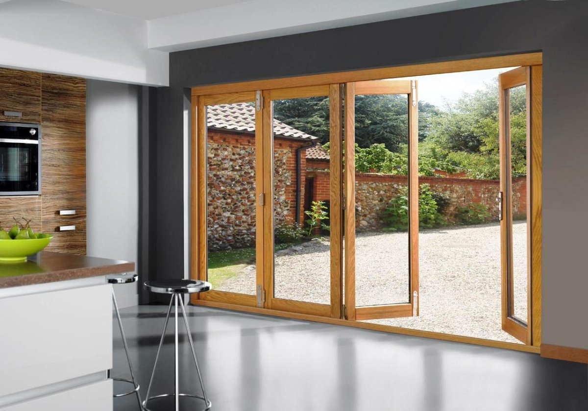 Большие деревянные окна для террасы