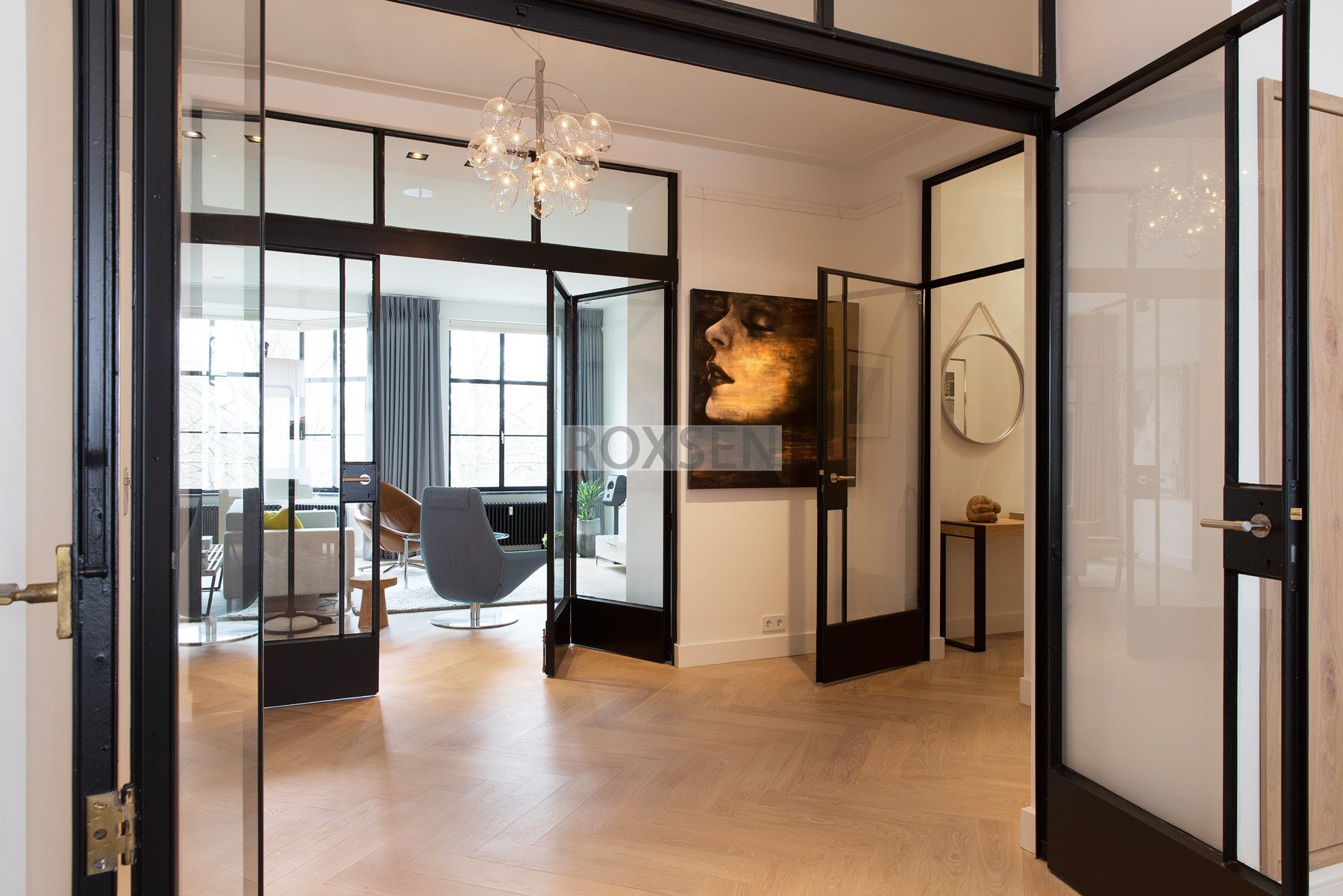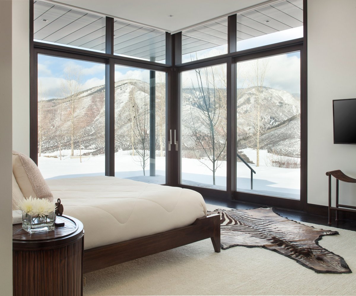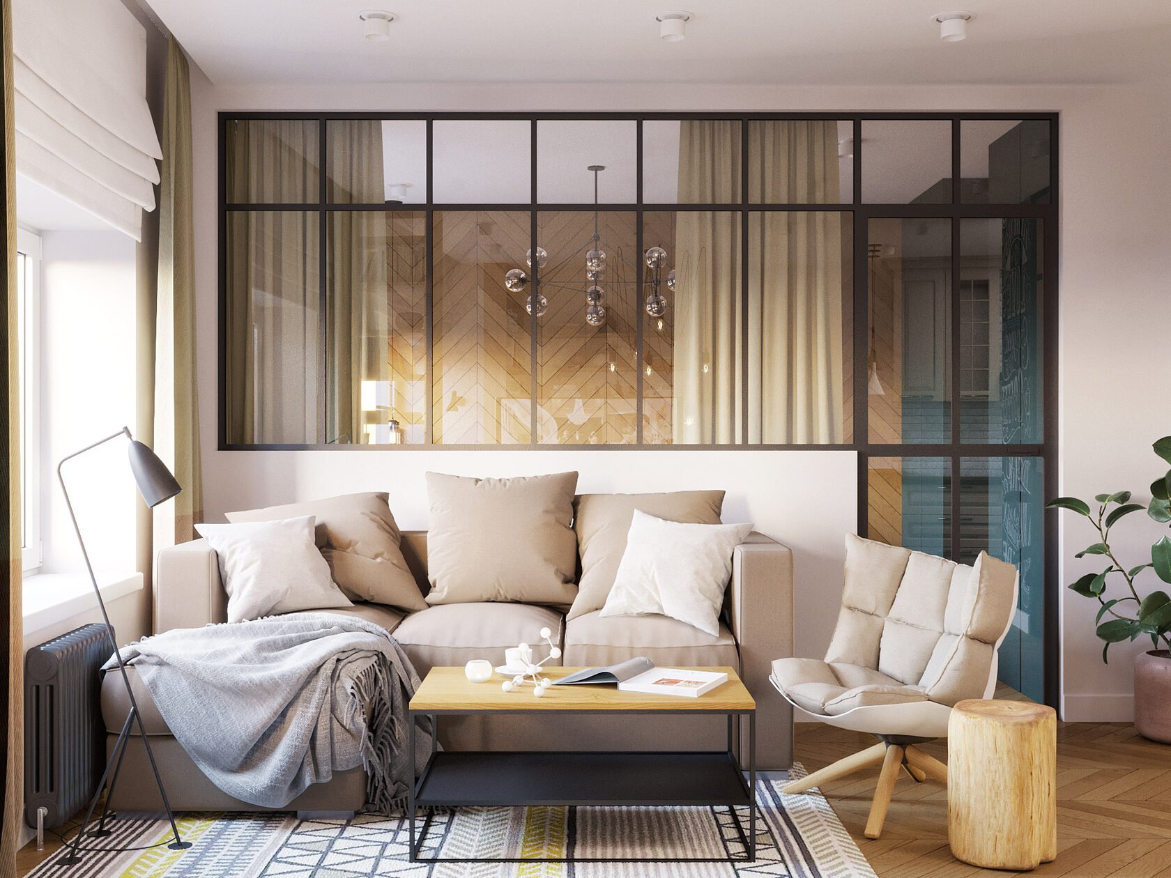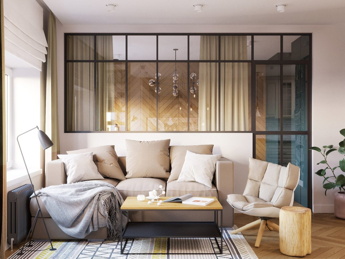 Стеклянная перегородка между спальней и гостиной