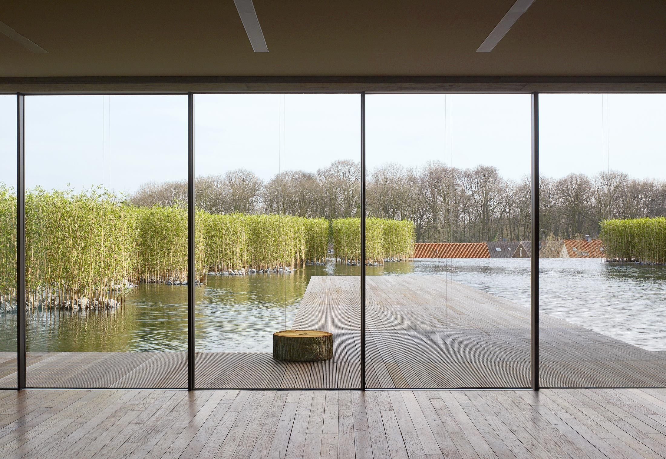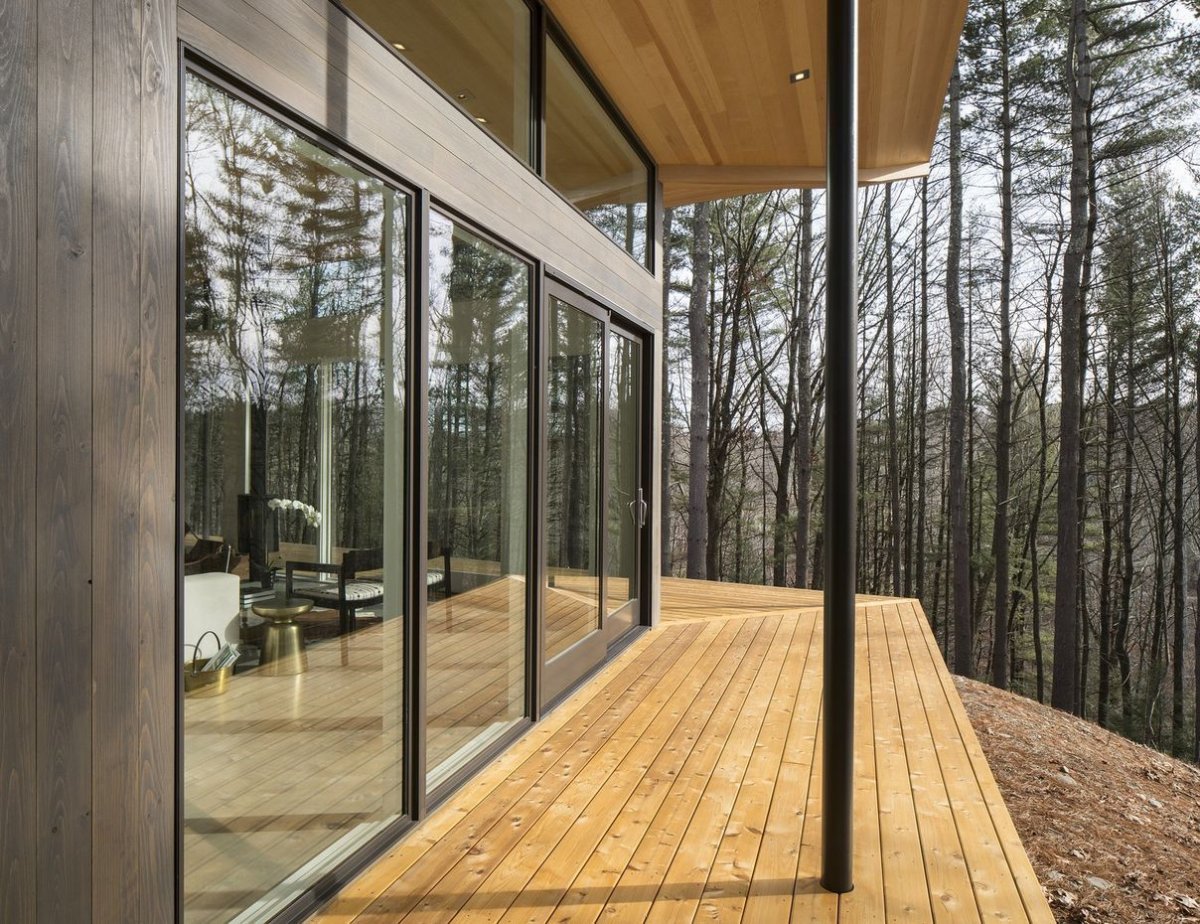 Деревянный дом со стеклянной стеной