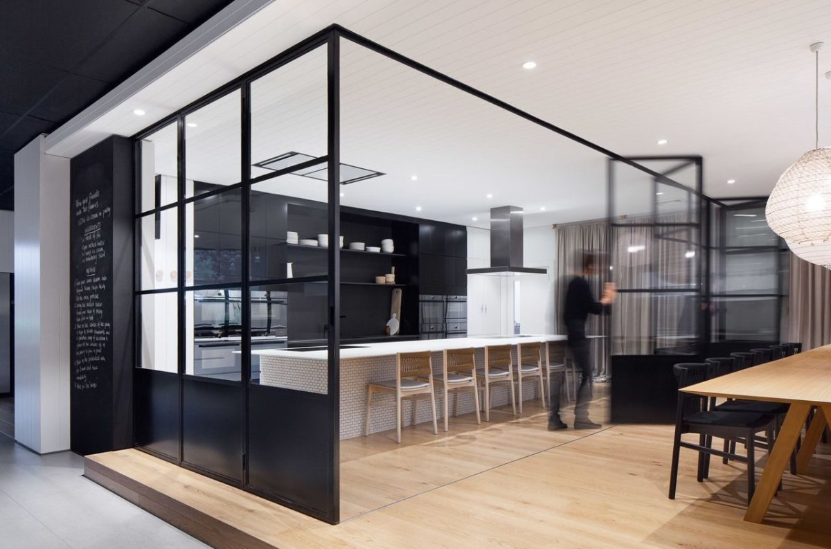 Раздвижные двери между кухней и гостиной