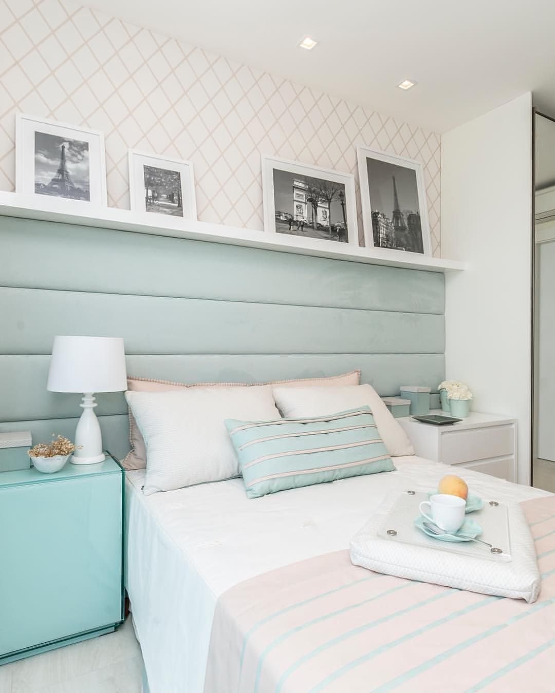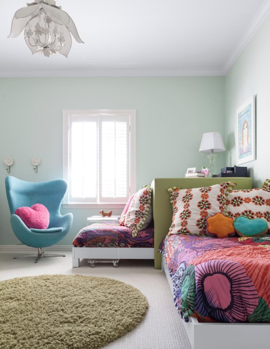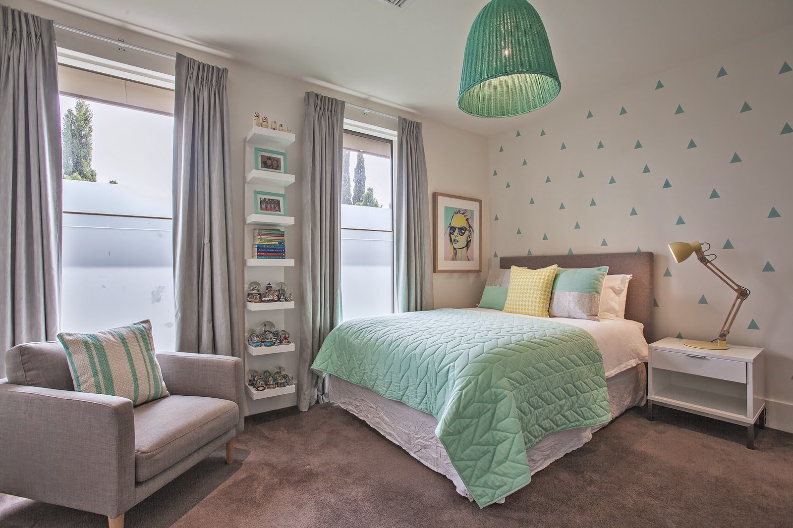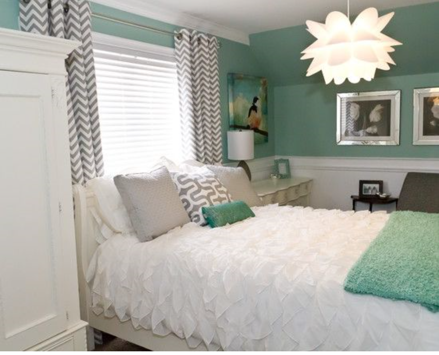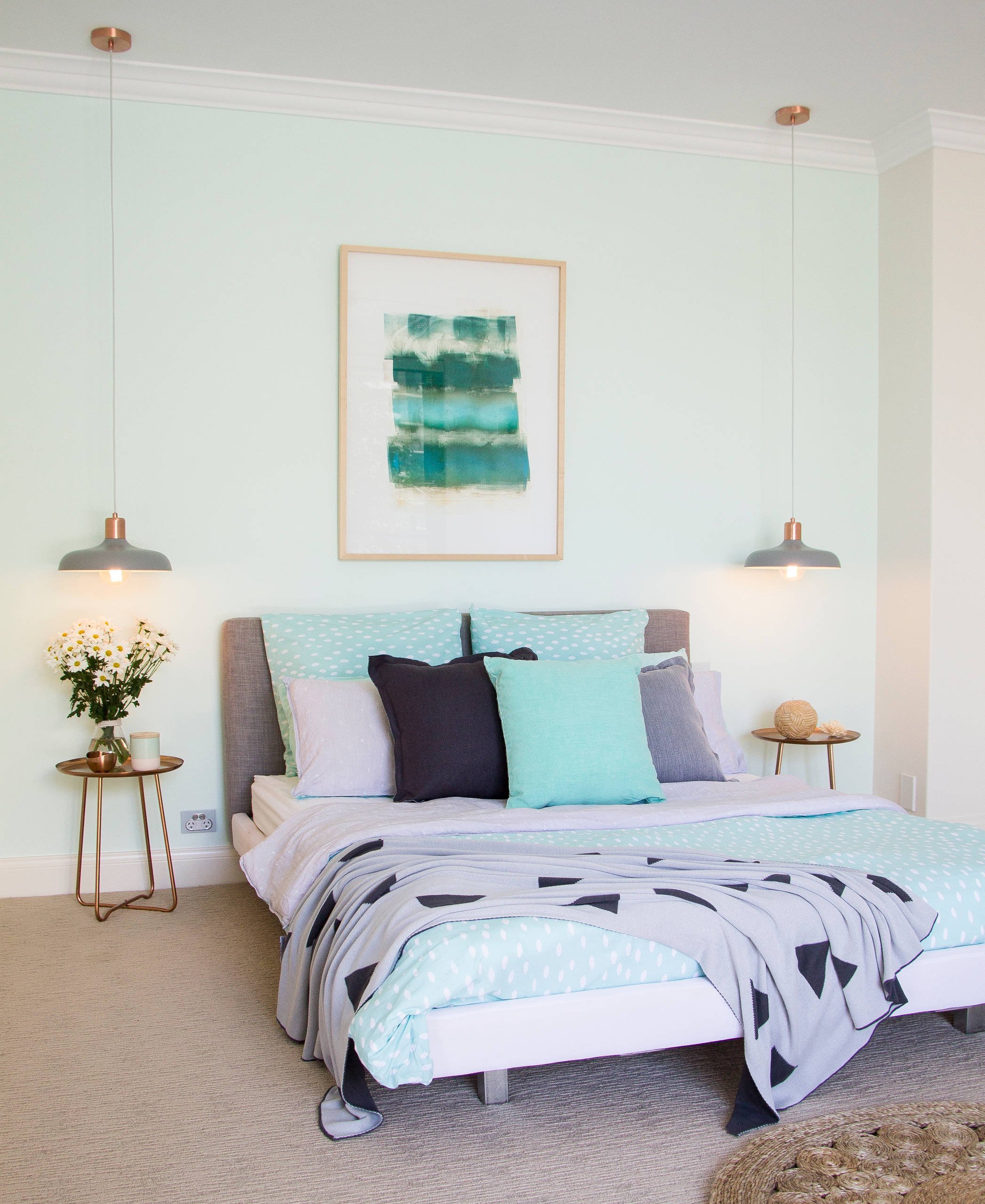 Мятные стены в спальне