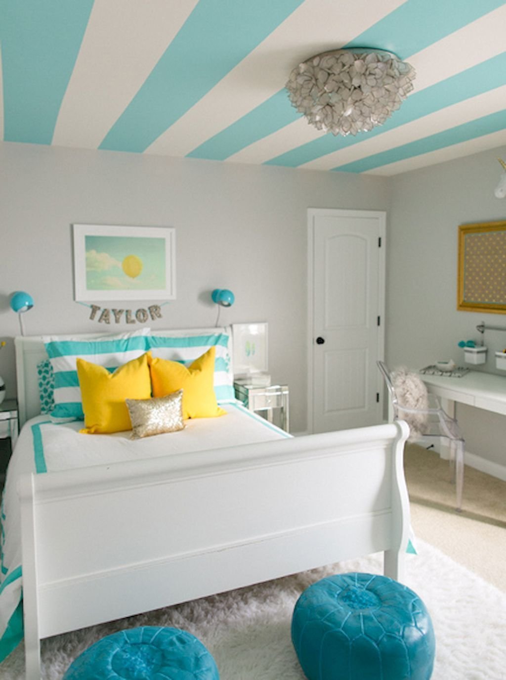 Спальня в бело бирюзовых тонах