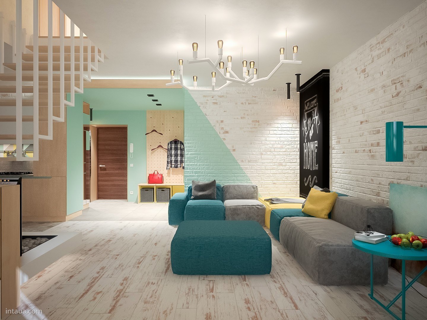 Интерьер в скандинавском стиле в бирюзовых тонах