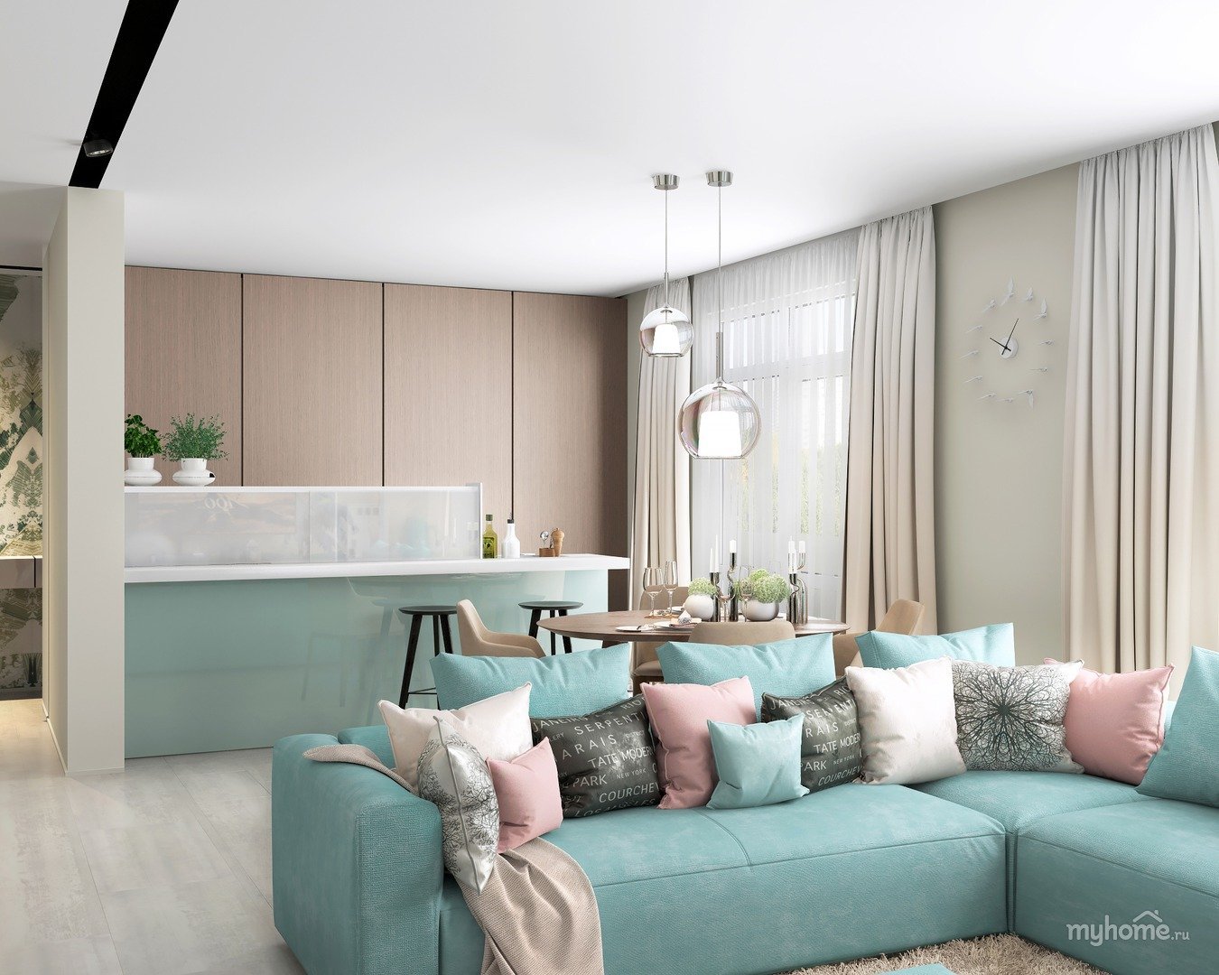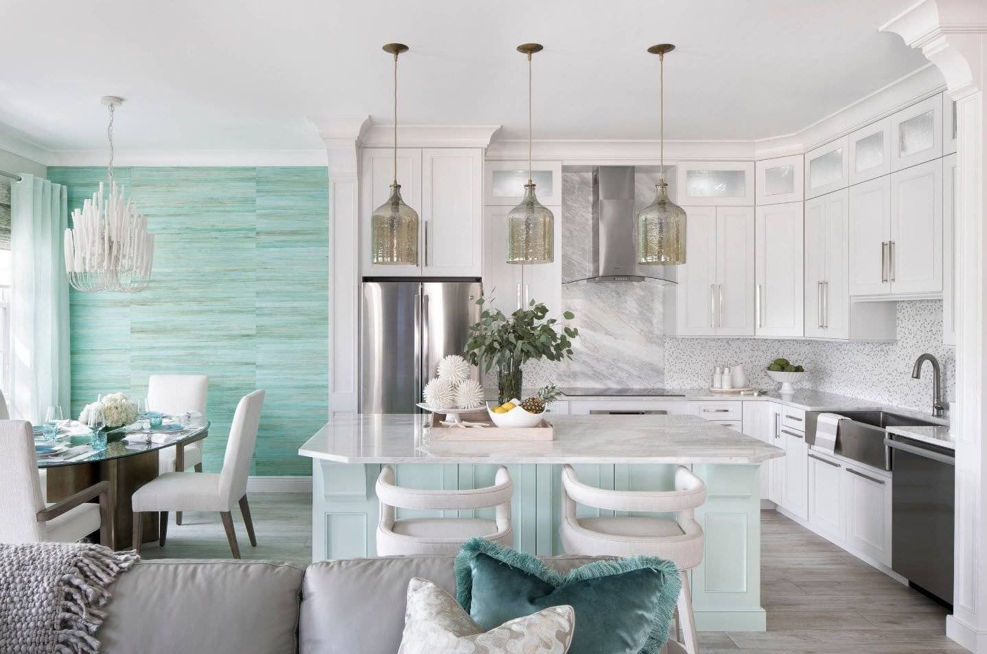 Кухня гостиная в мятных тонах