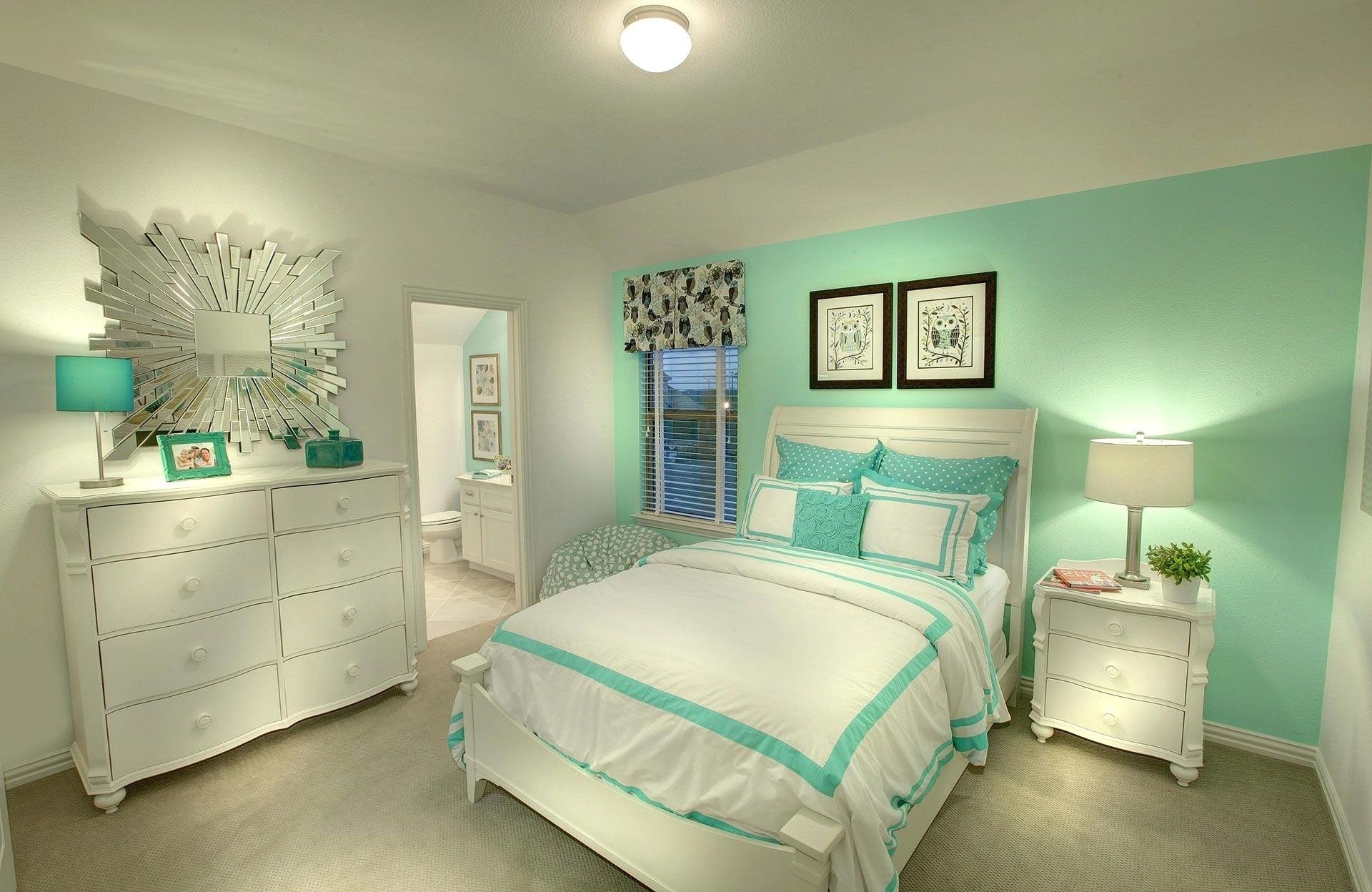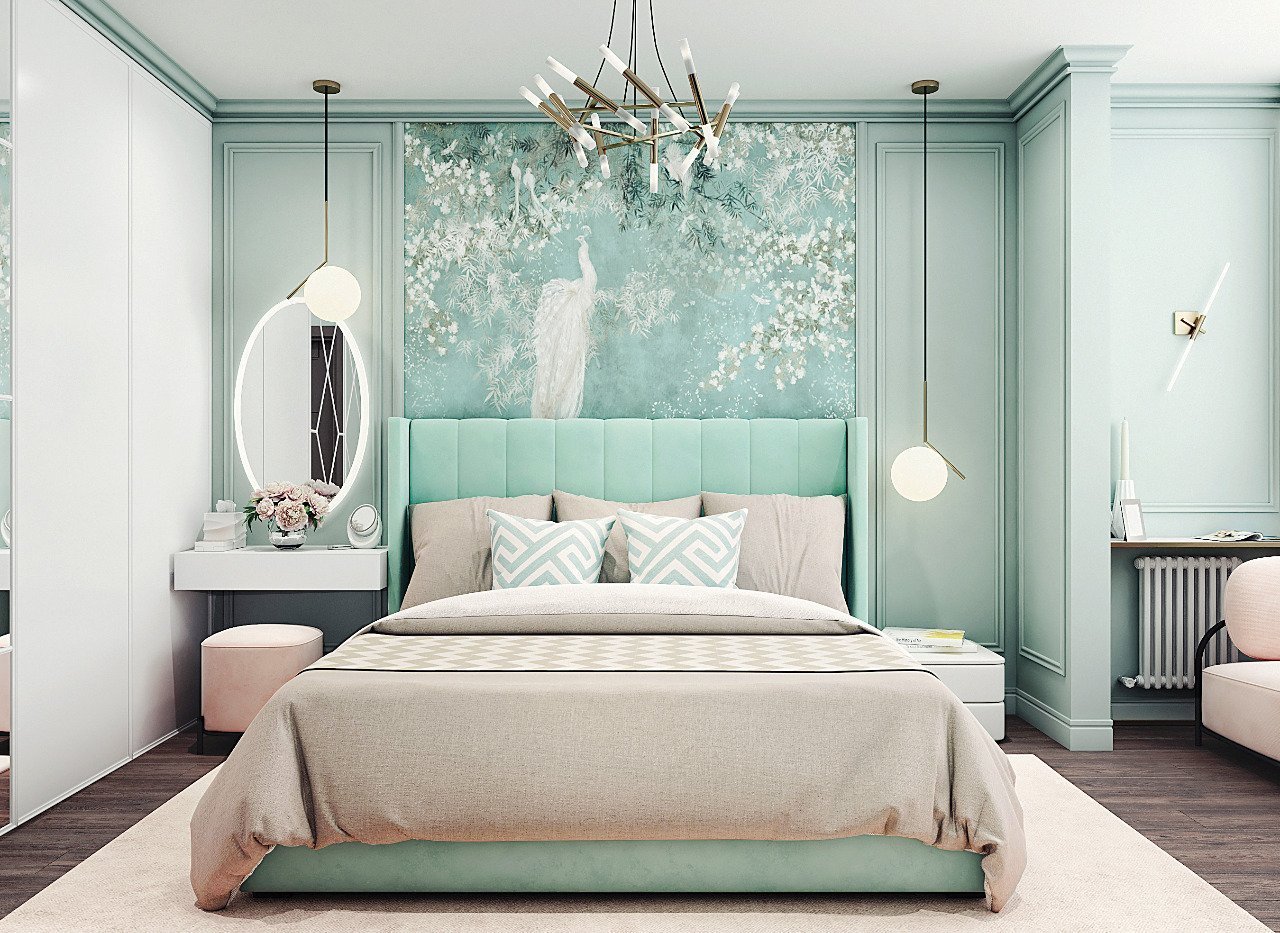 Спальня в светло бирюзовых тонах