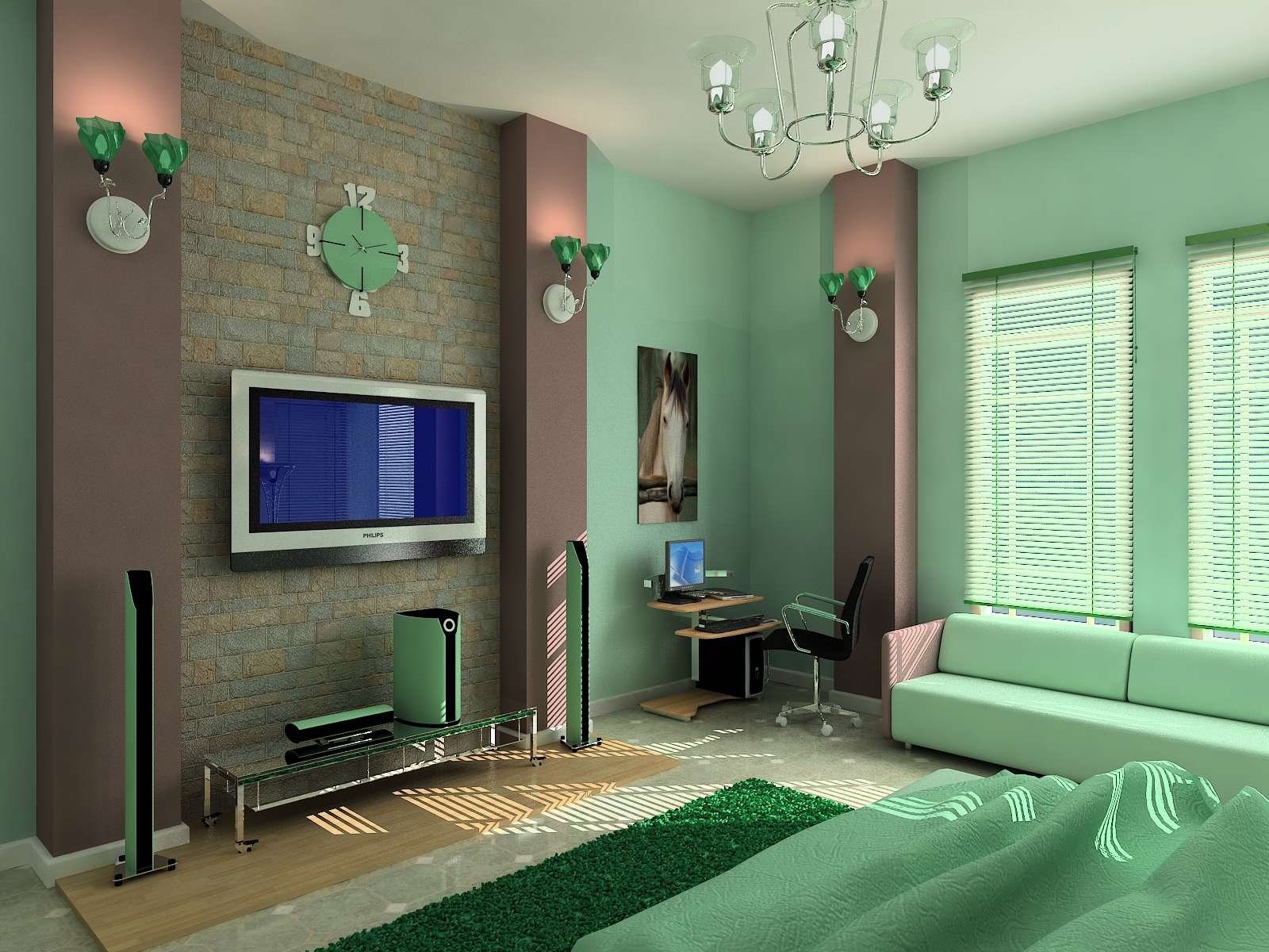 Мятный цвет в интерьере студии
