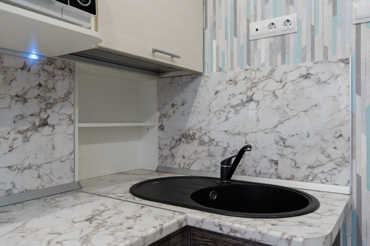 Фартук из мрамора на кухне