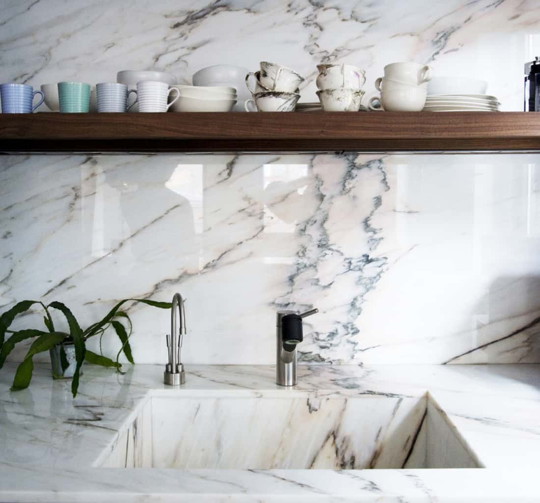 Мрамор в интерьере кухни