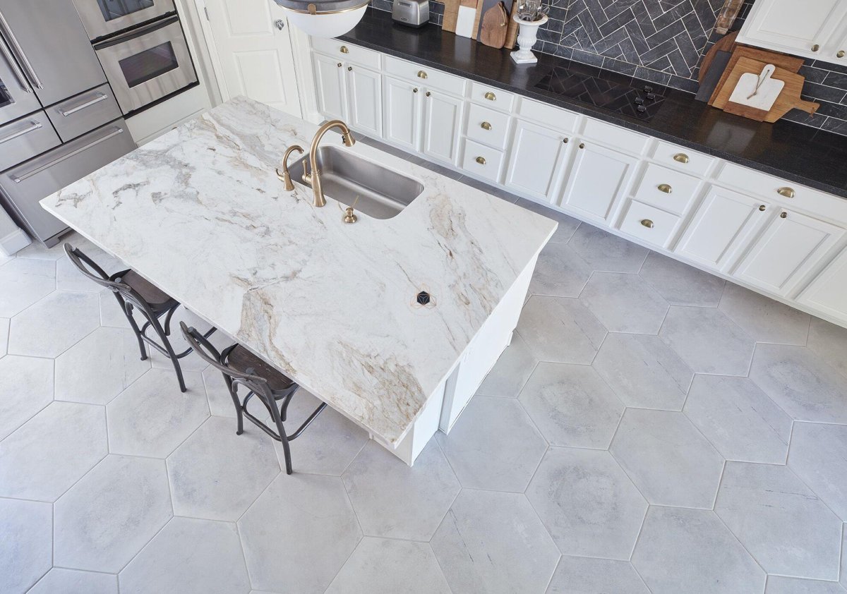 Кухни Неоклассика пол мрамор белый