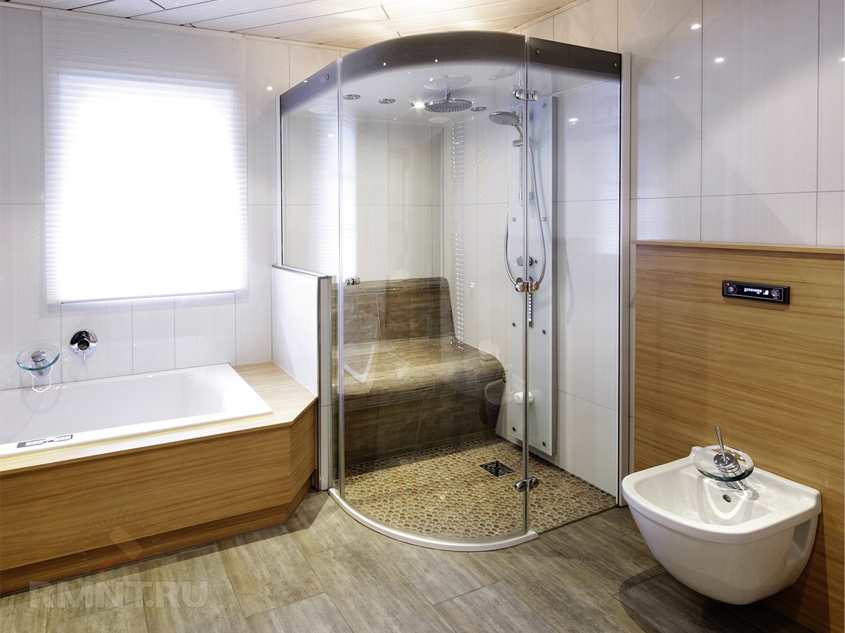 Ванная и душевая кабина в одной комнате