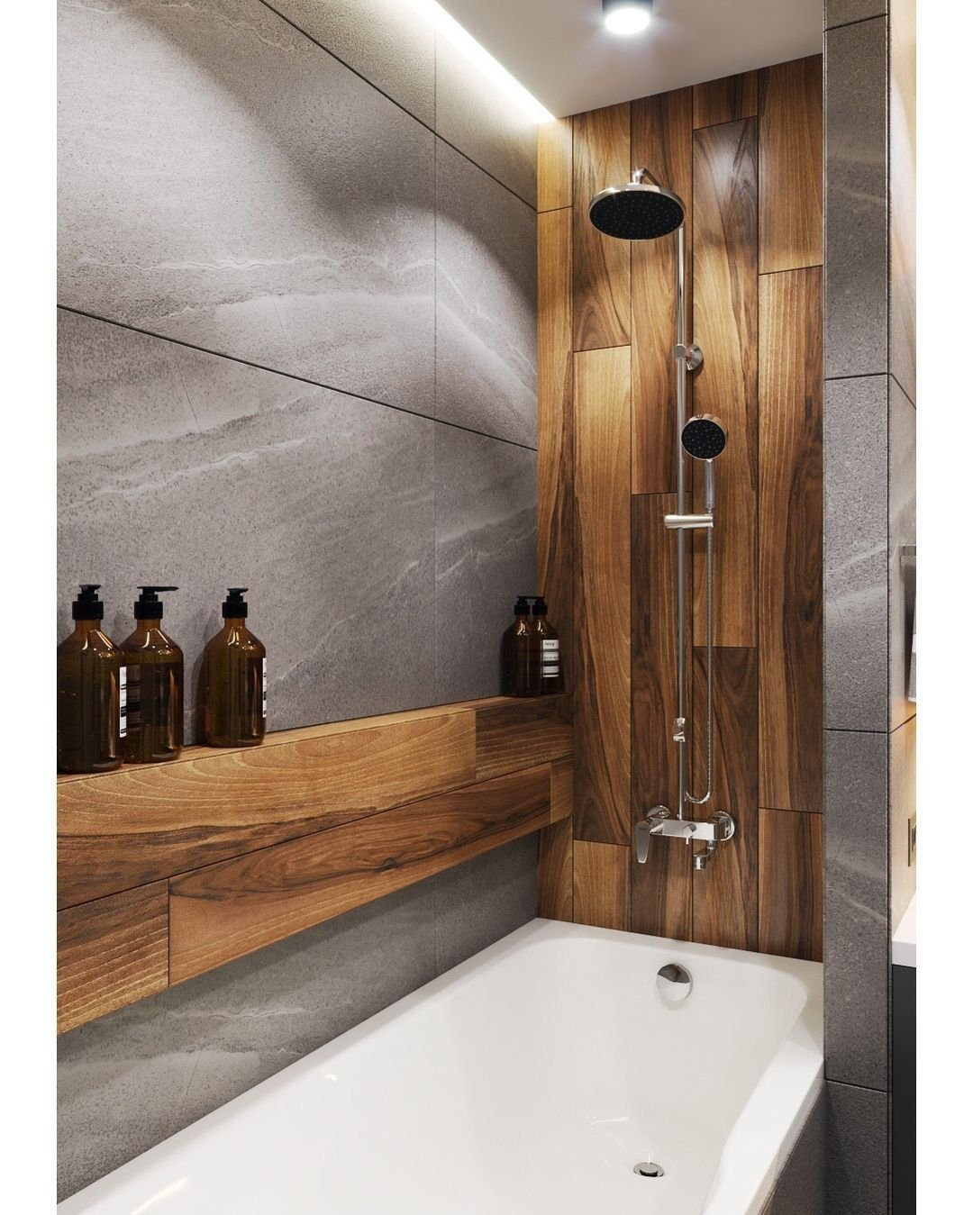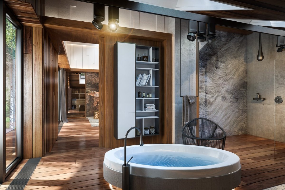 Ванная под бетон и дерево