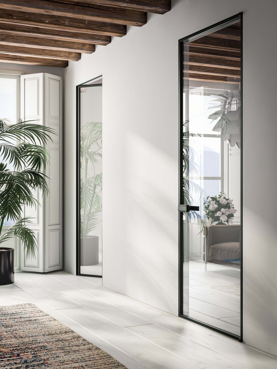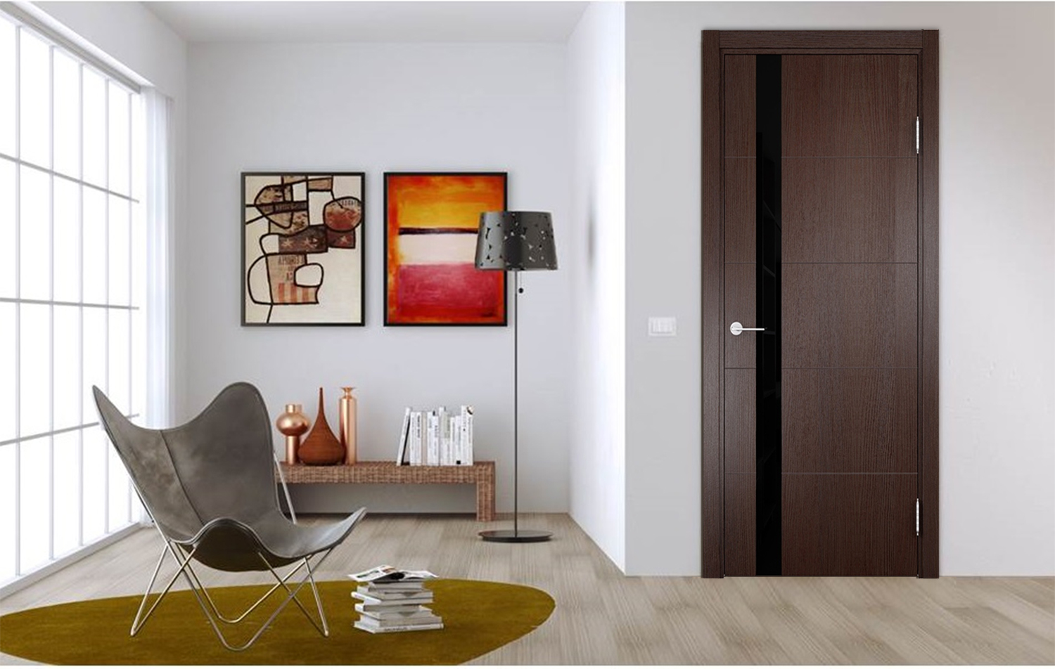 Дверное полотно МДФ ПВХ Делюкс Линнея 800+стекло BLK