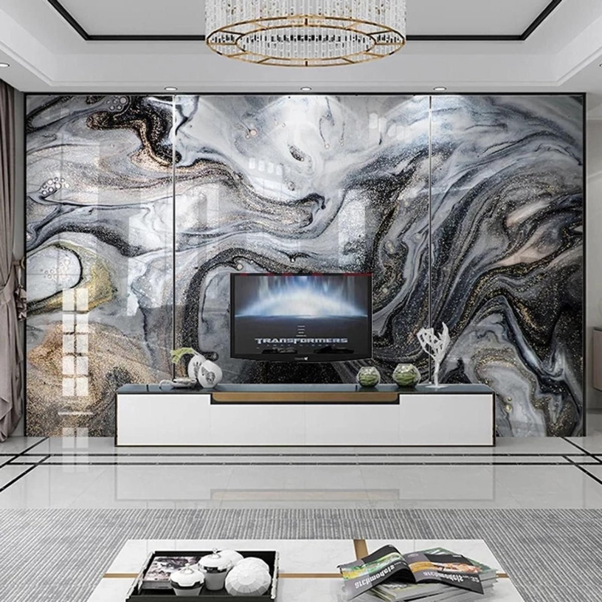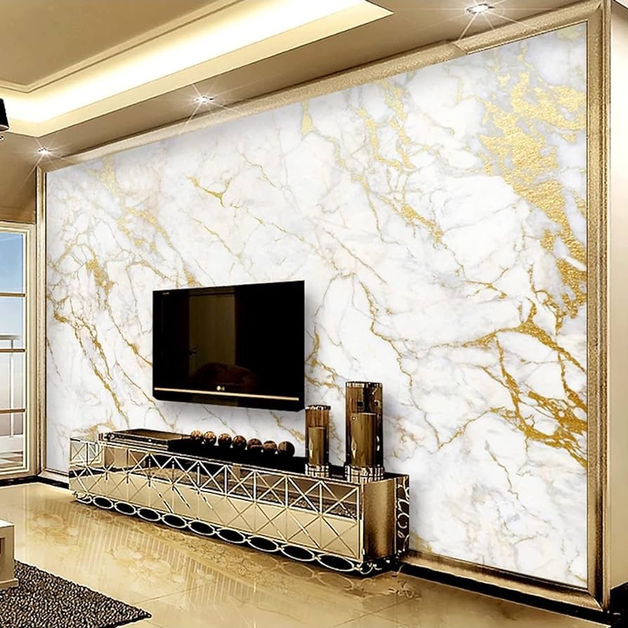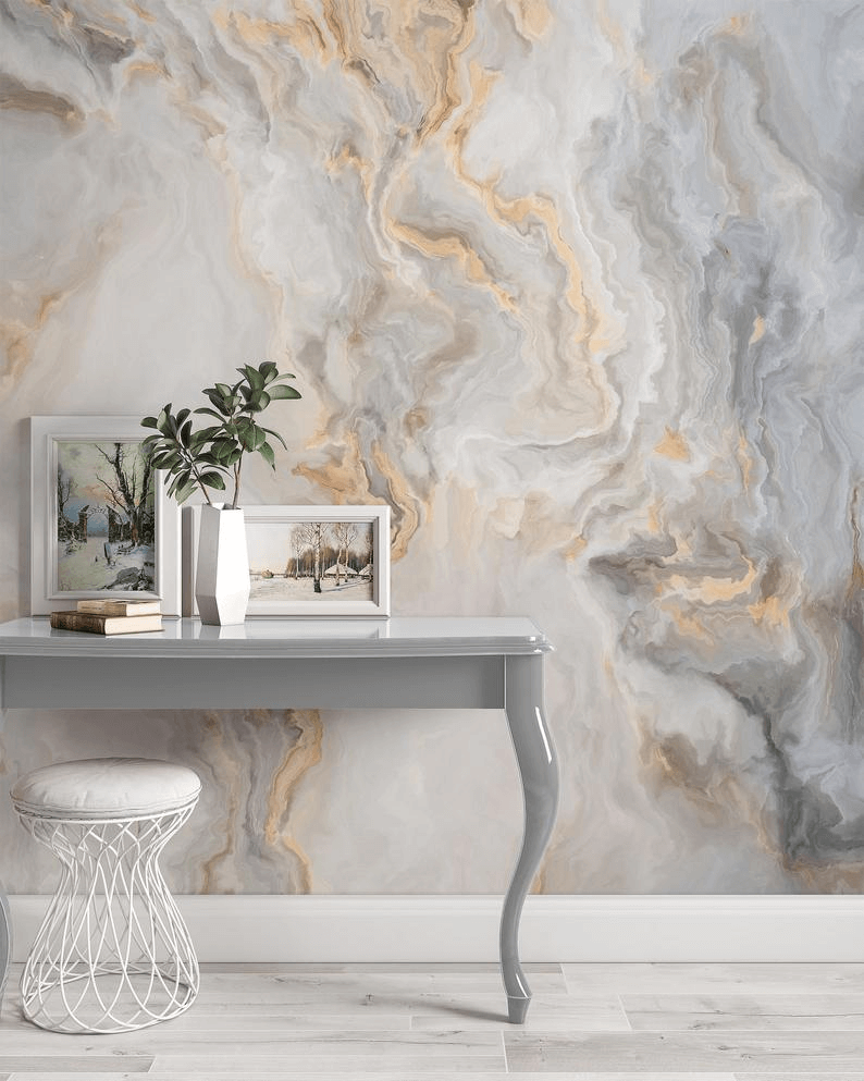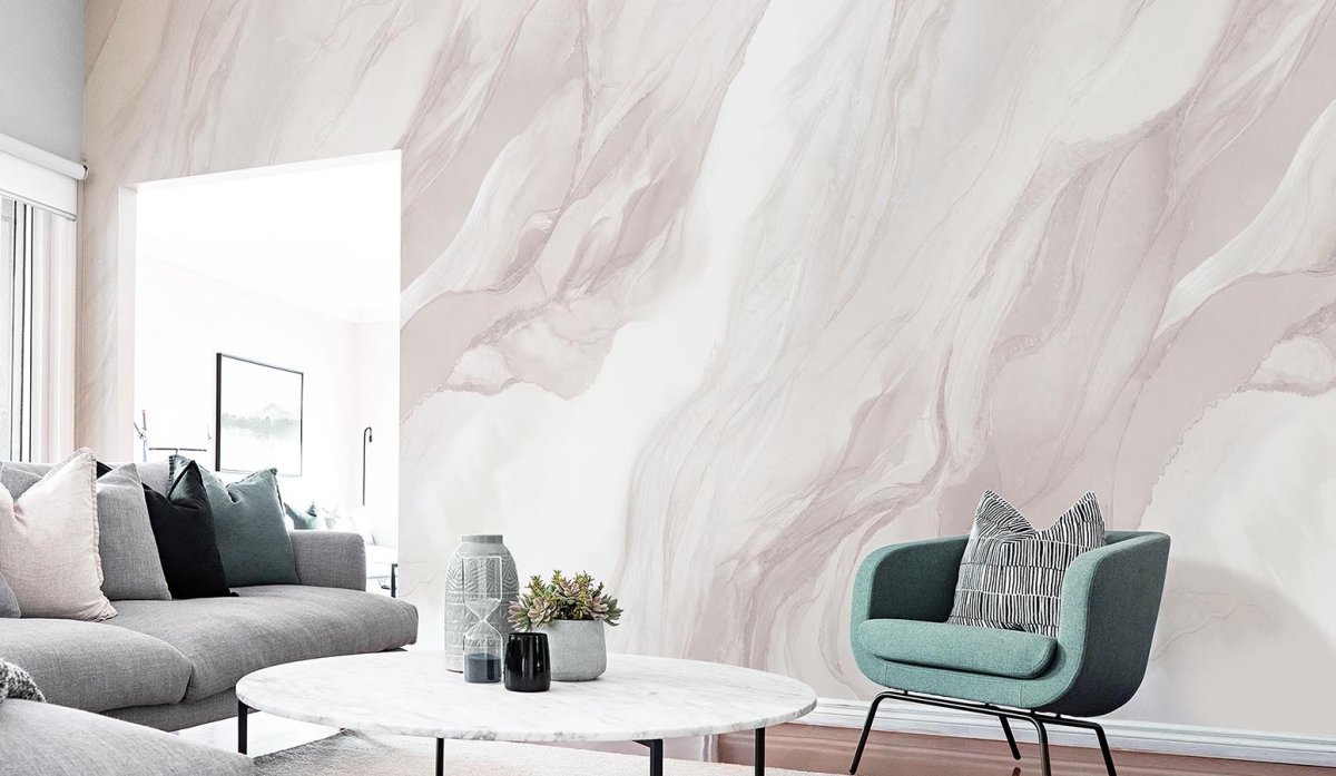 Обои под мрамор в интерьере гостиной