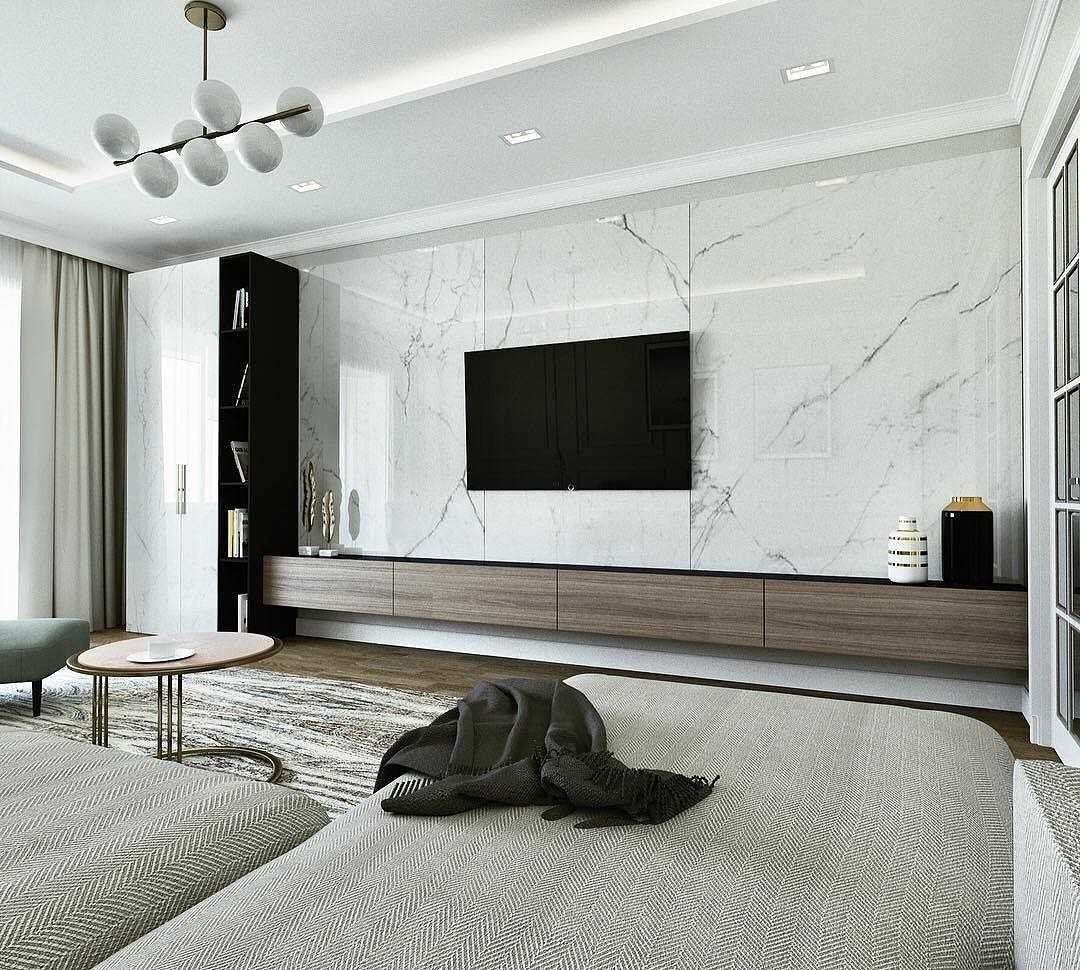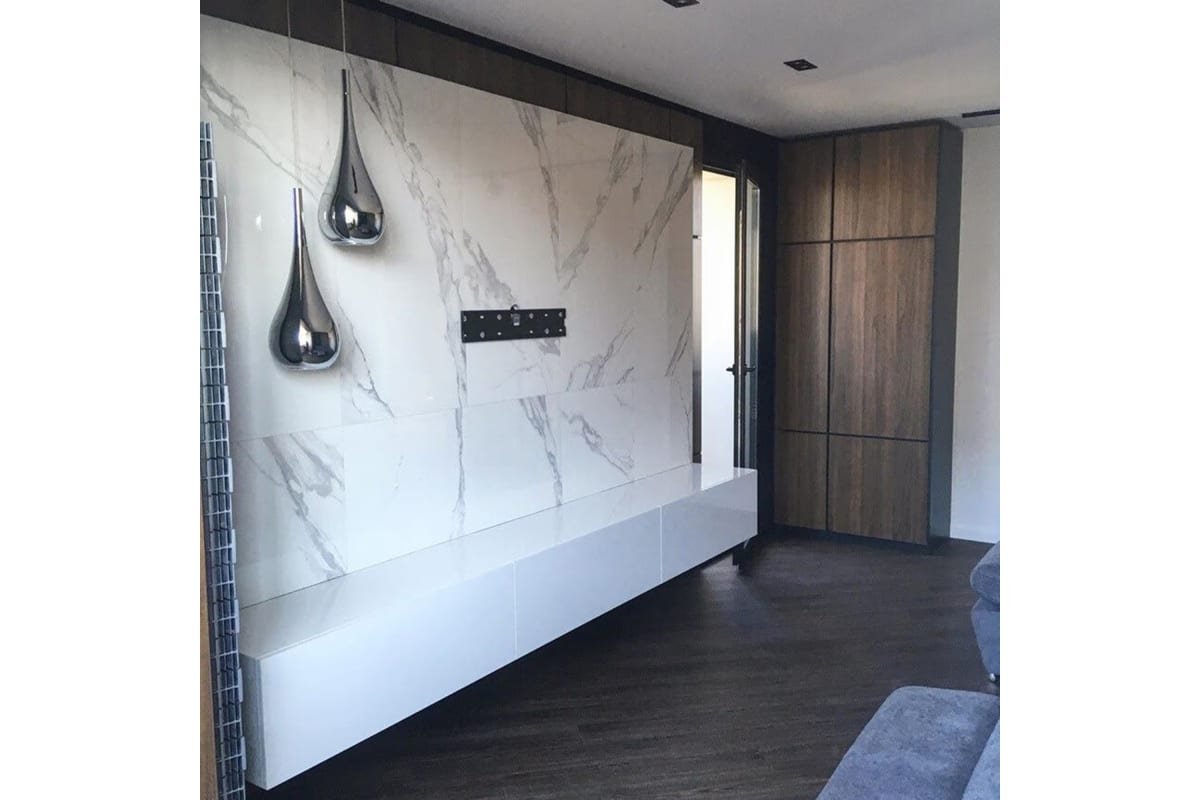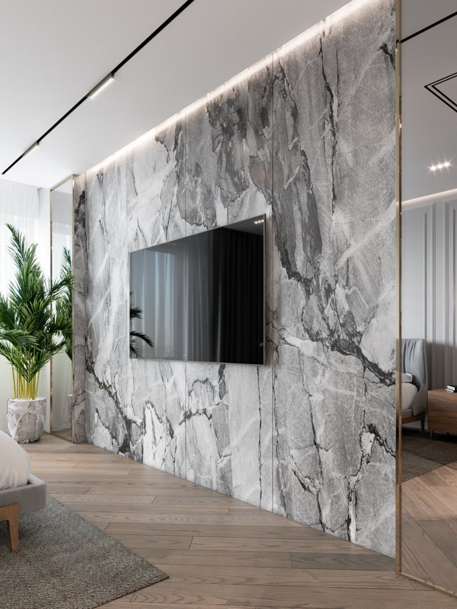 Телевизор на мраморной стене