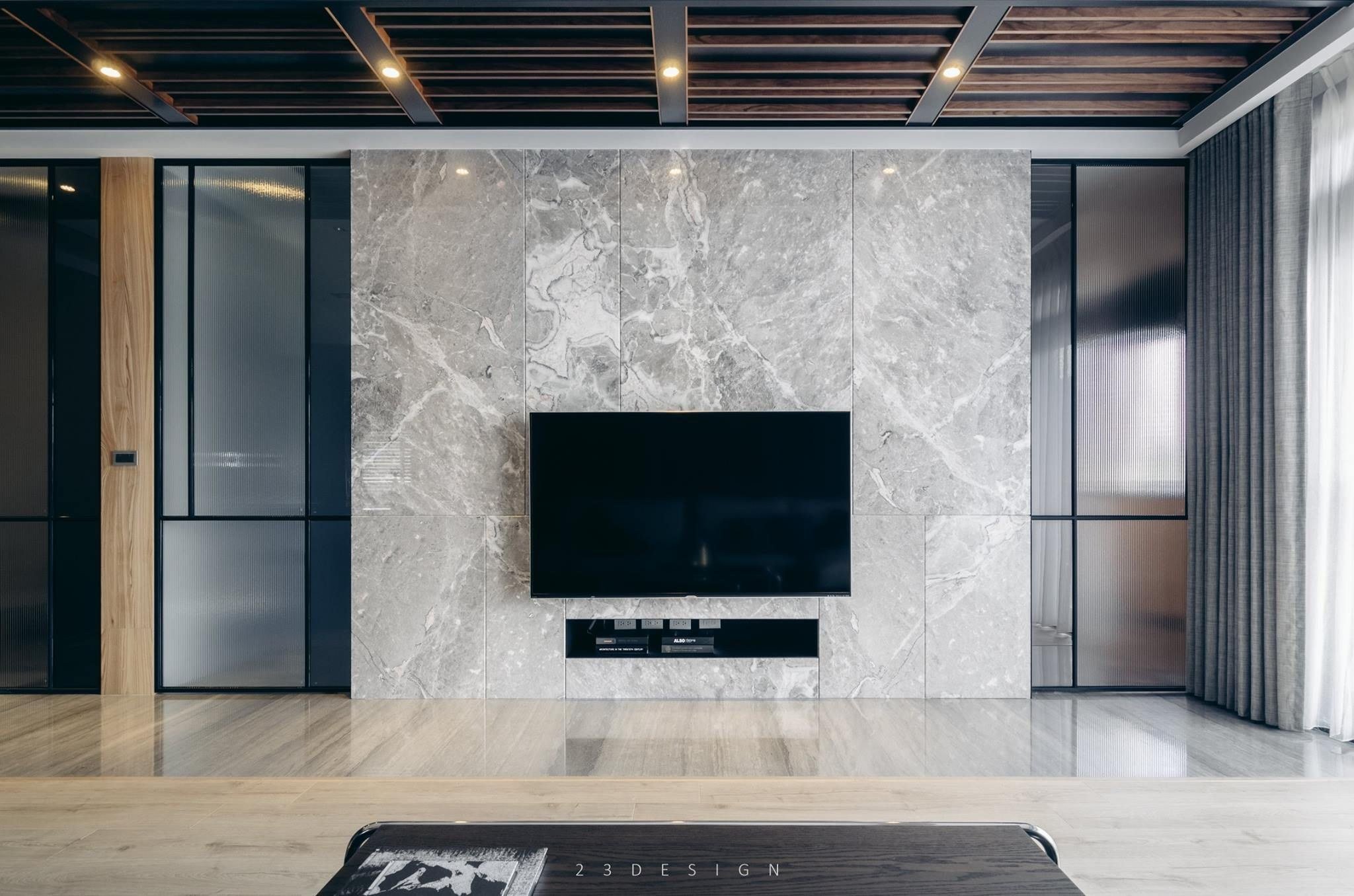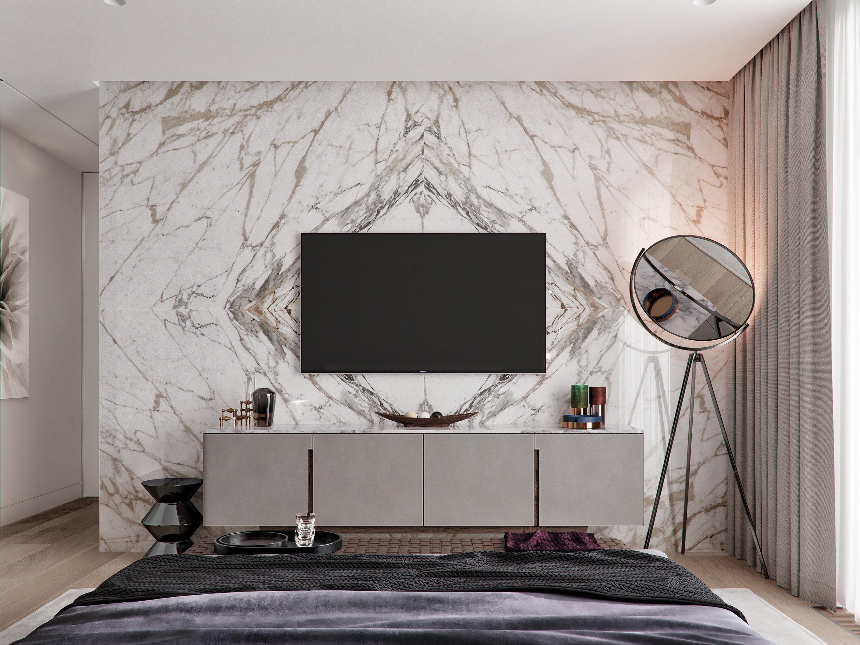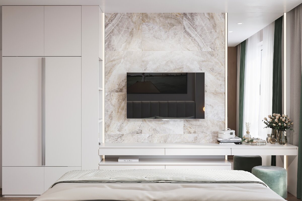 Телевизор на мраморной стене