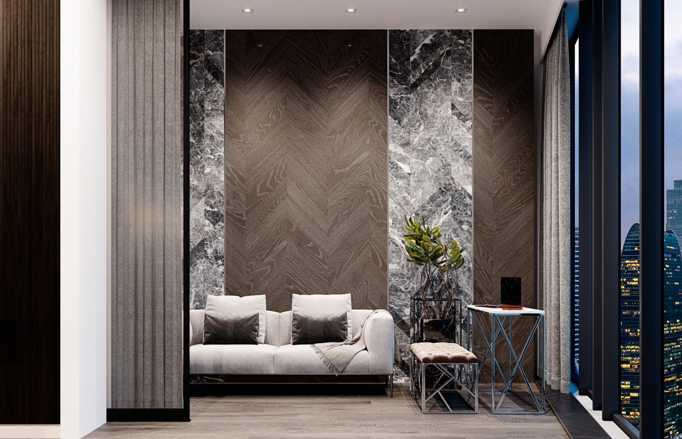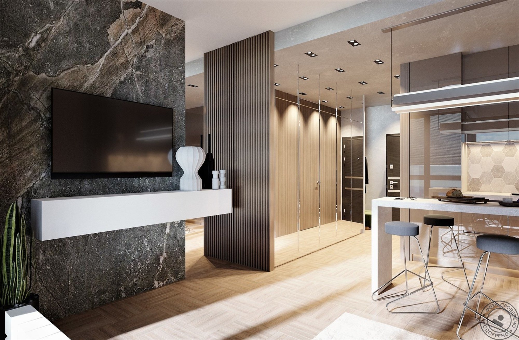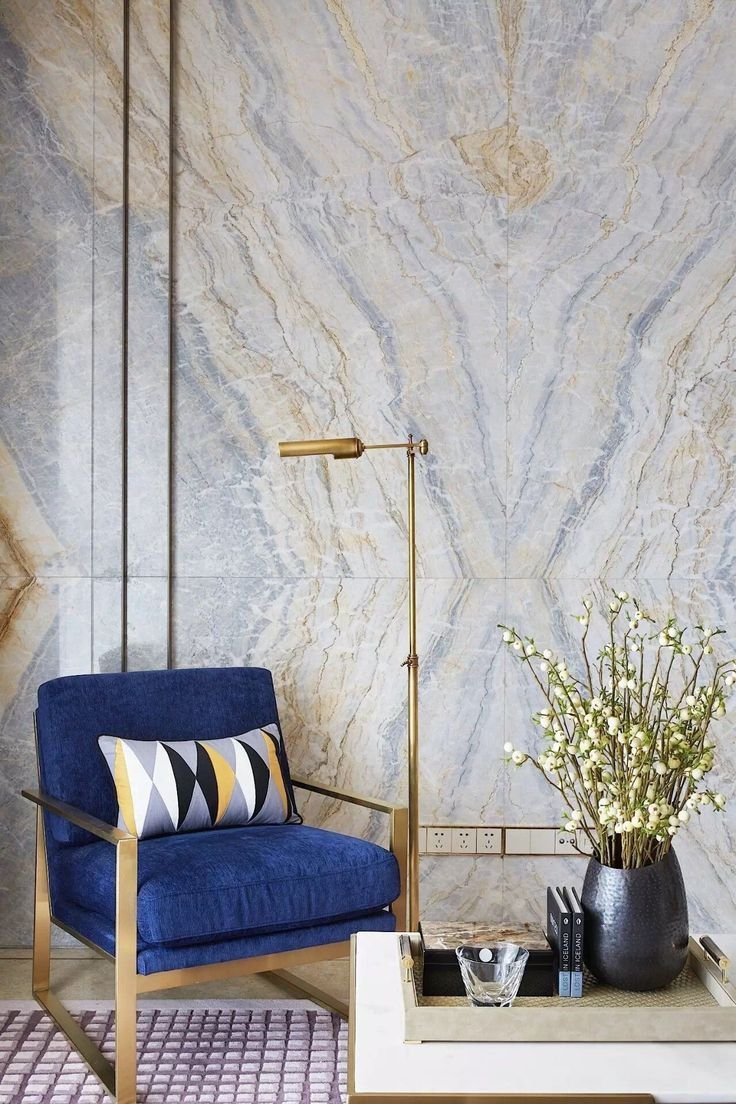 Гостиная с мраморной стеной