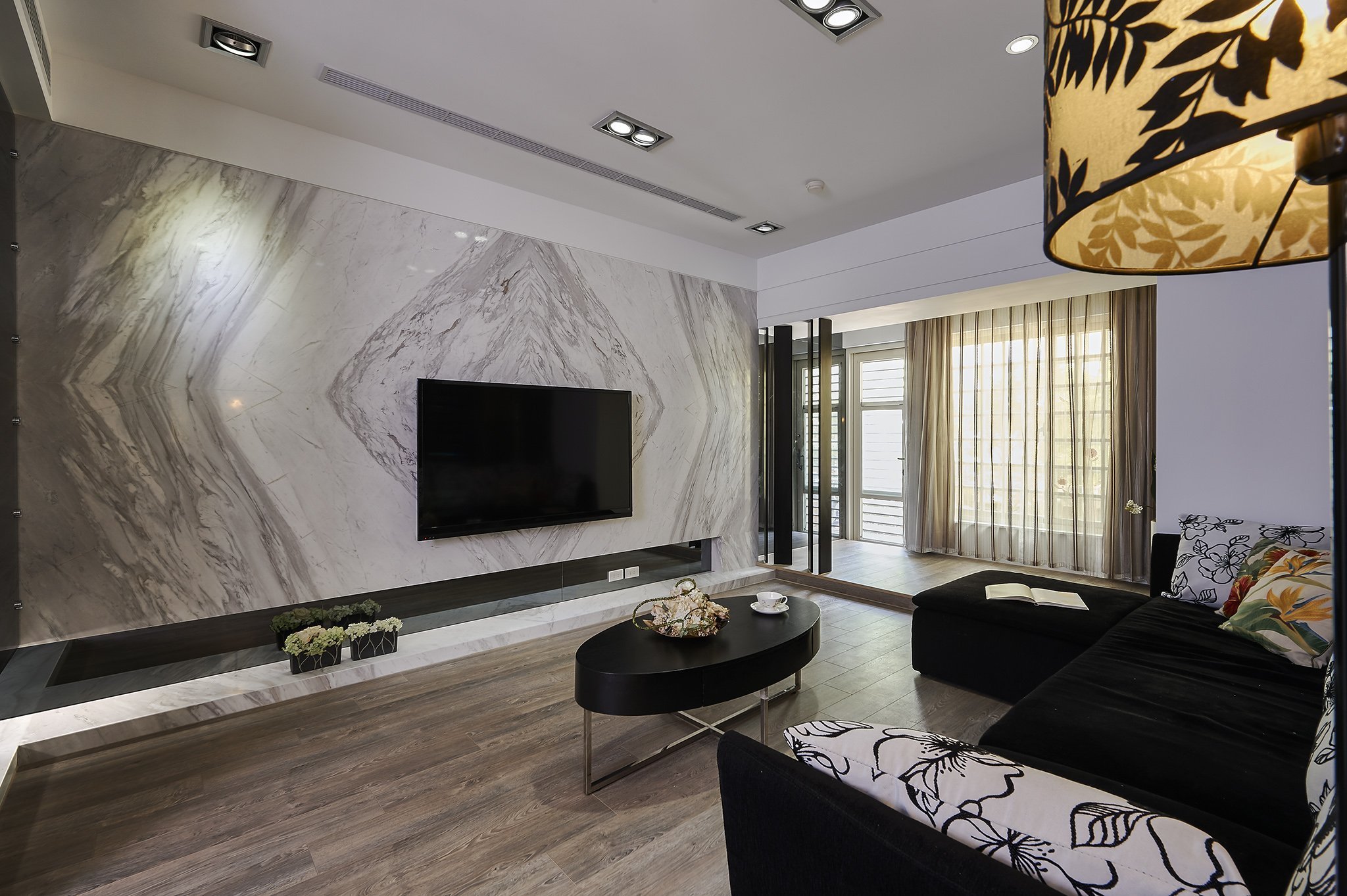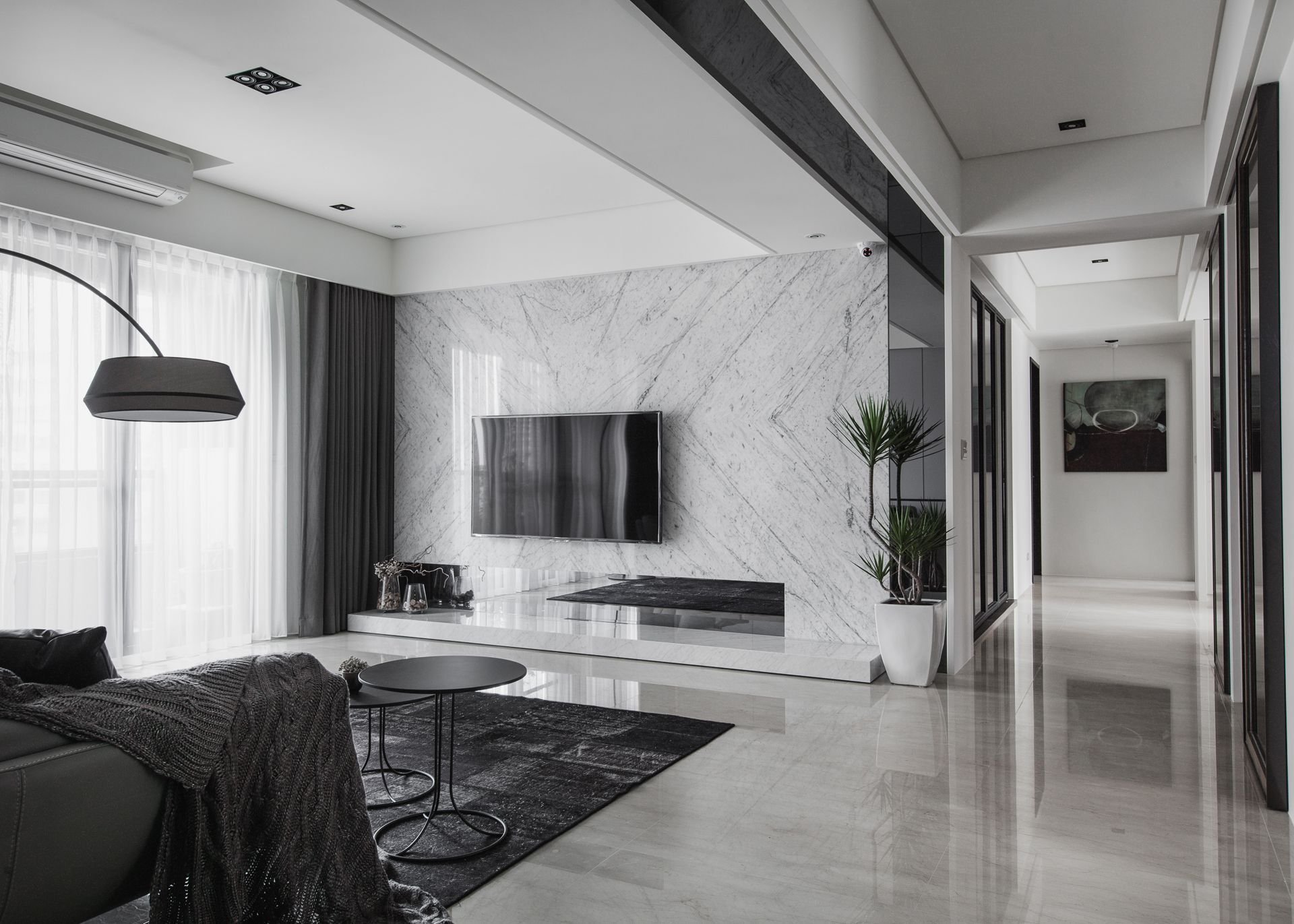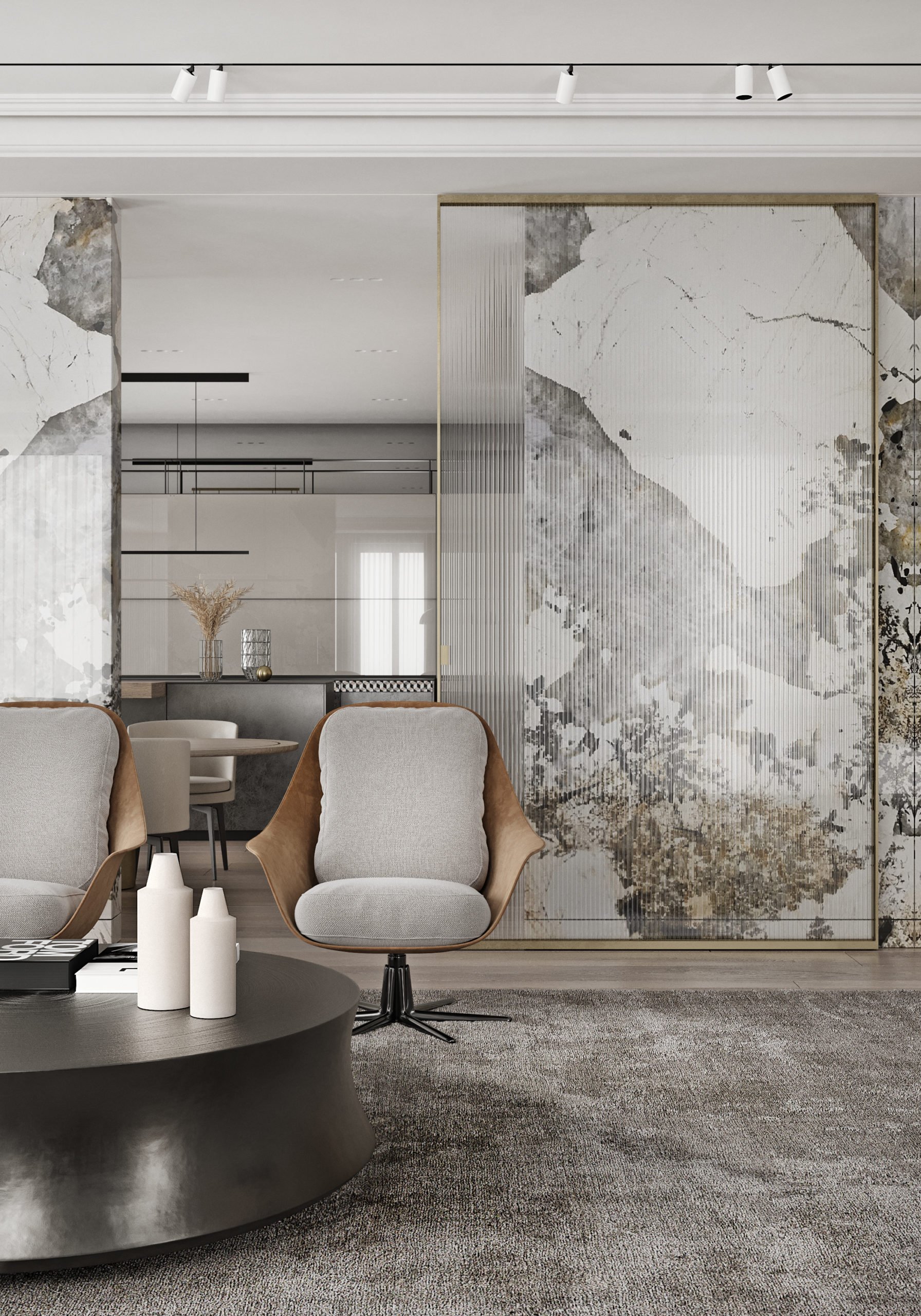Гостиная с мраморной стеной
