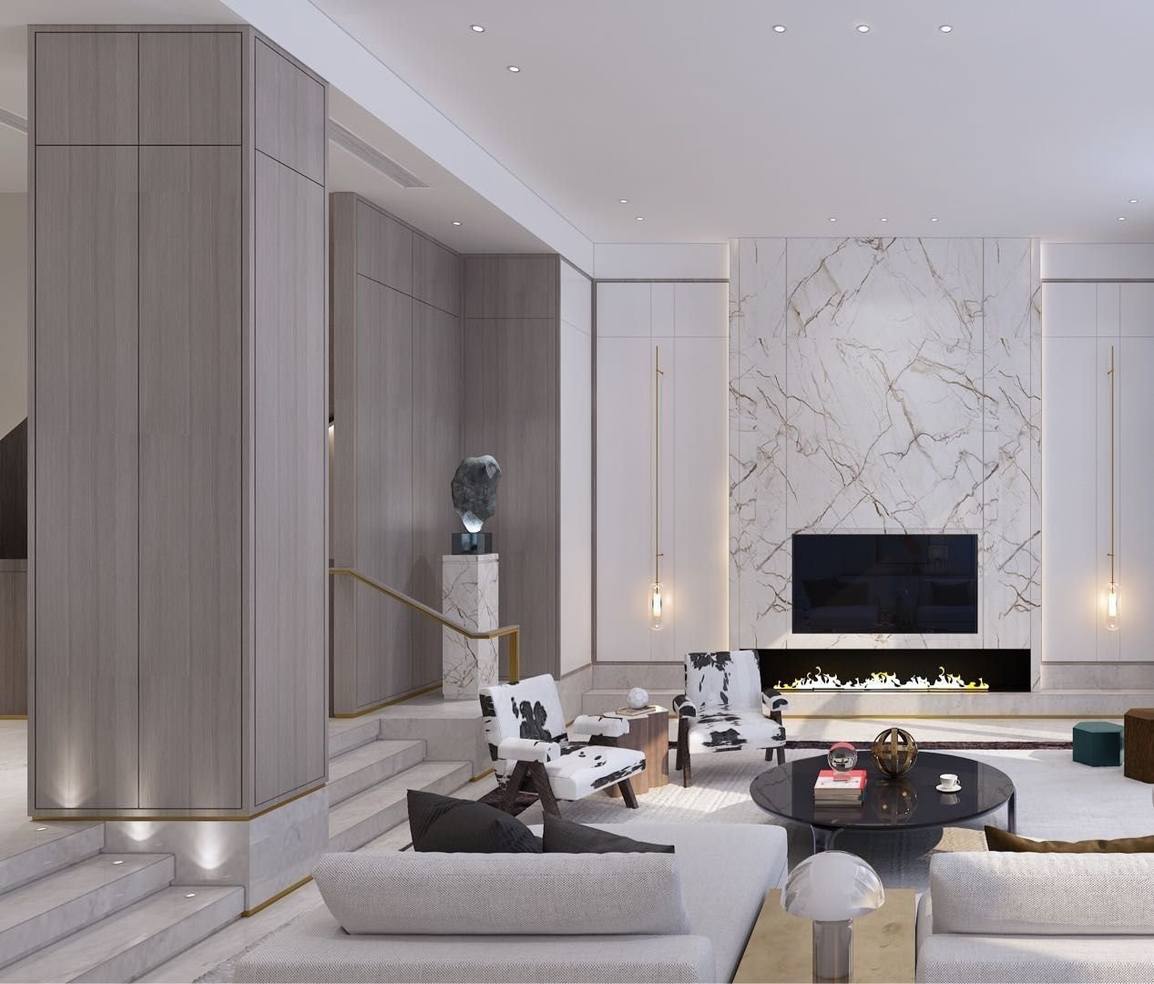 Мрамор в интерьере гостиной
