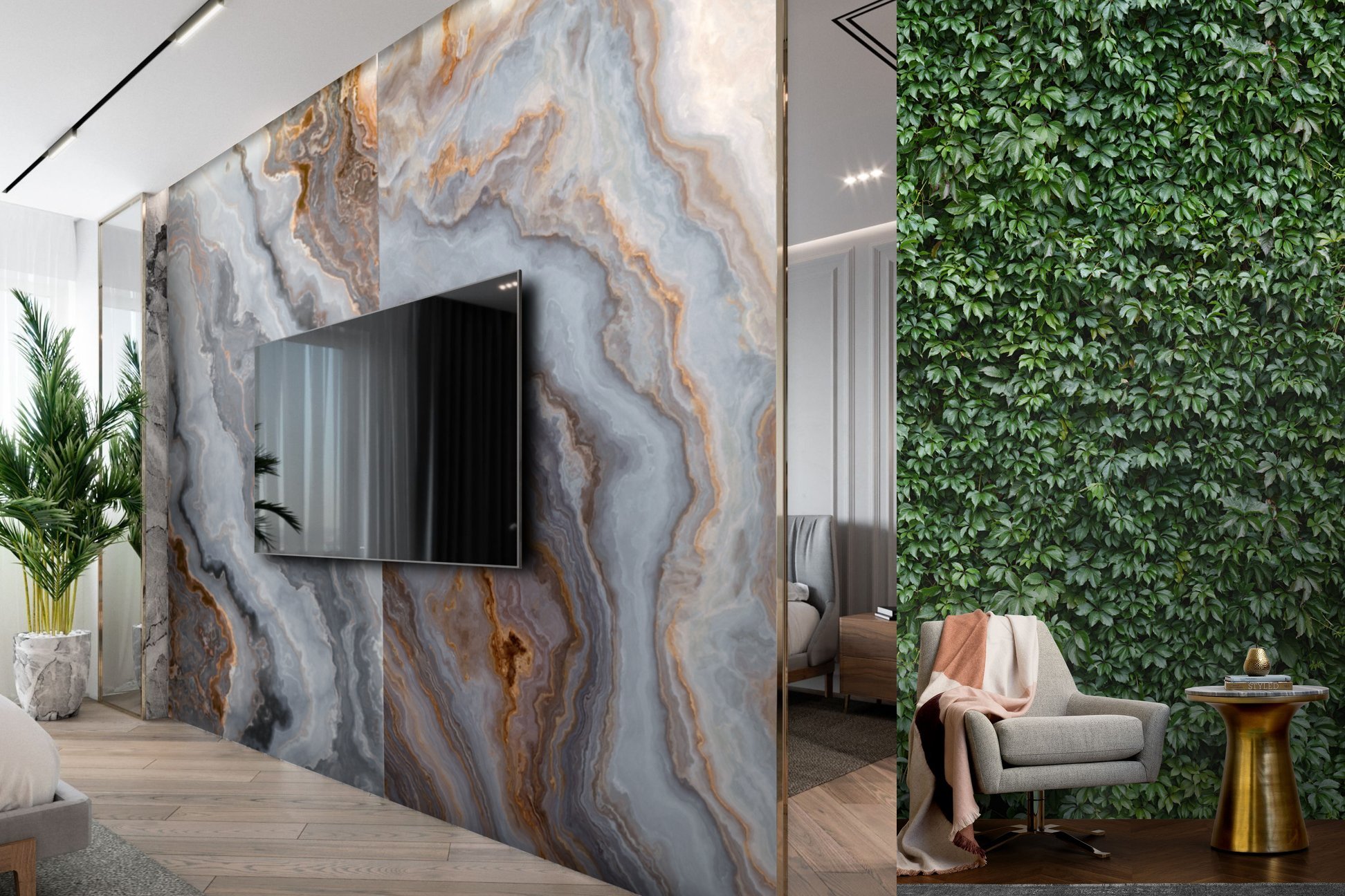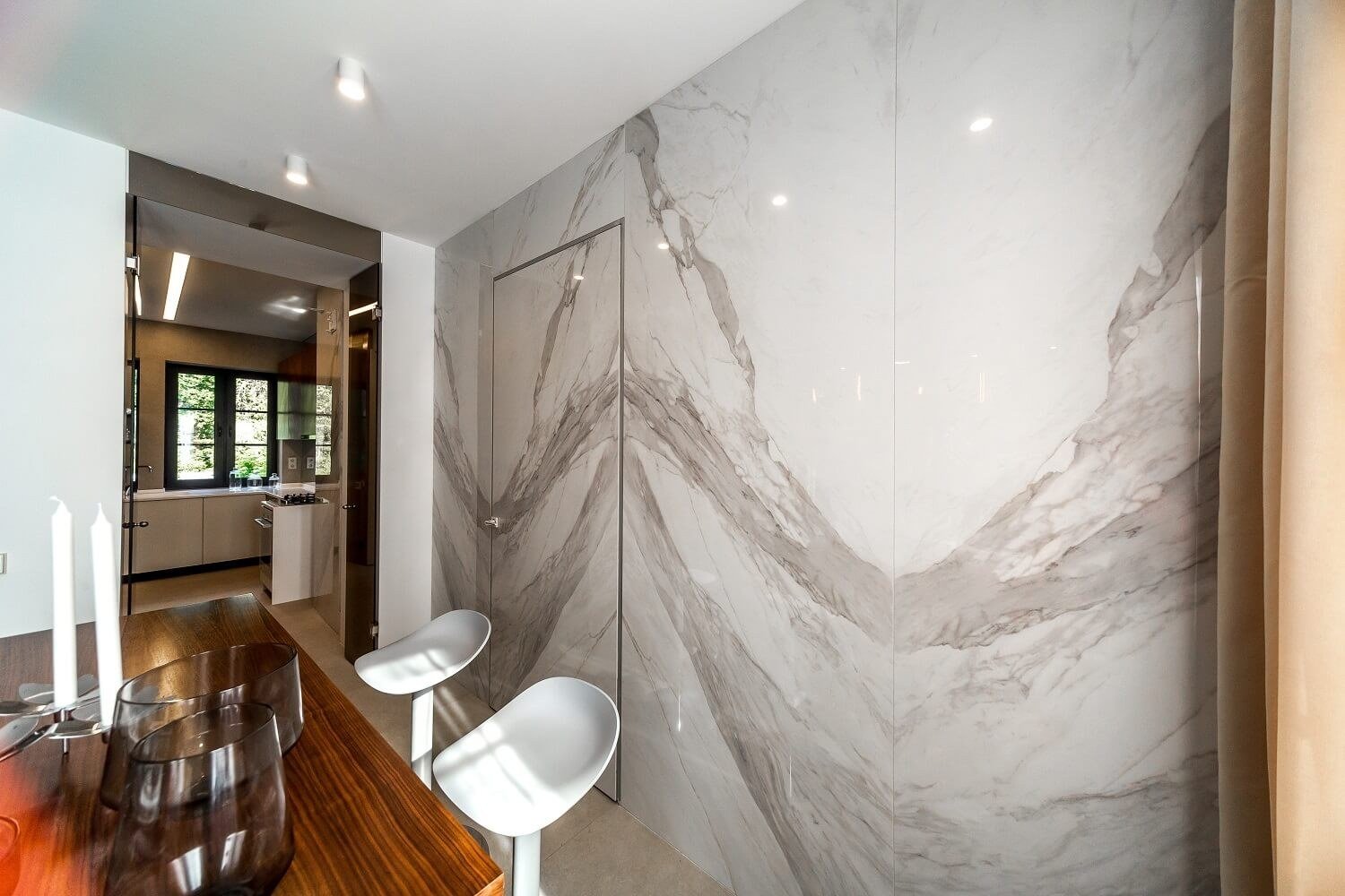 Мраморная стена в интерьере