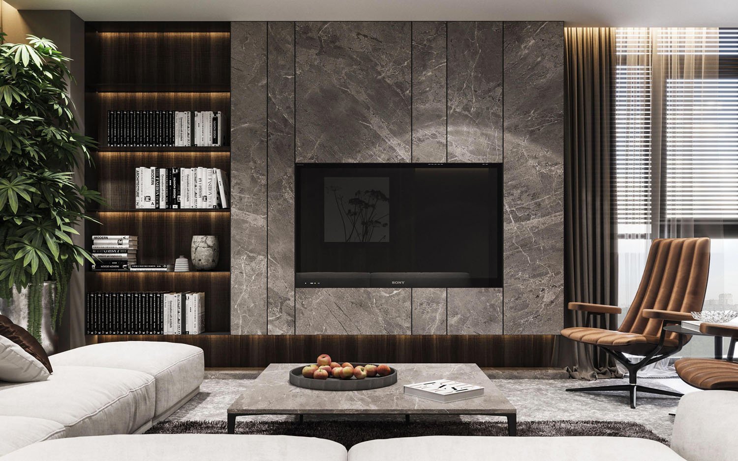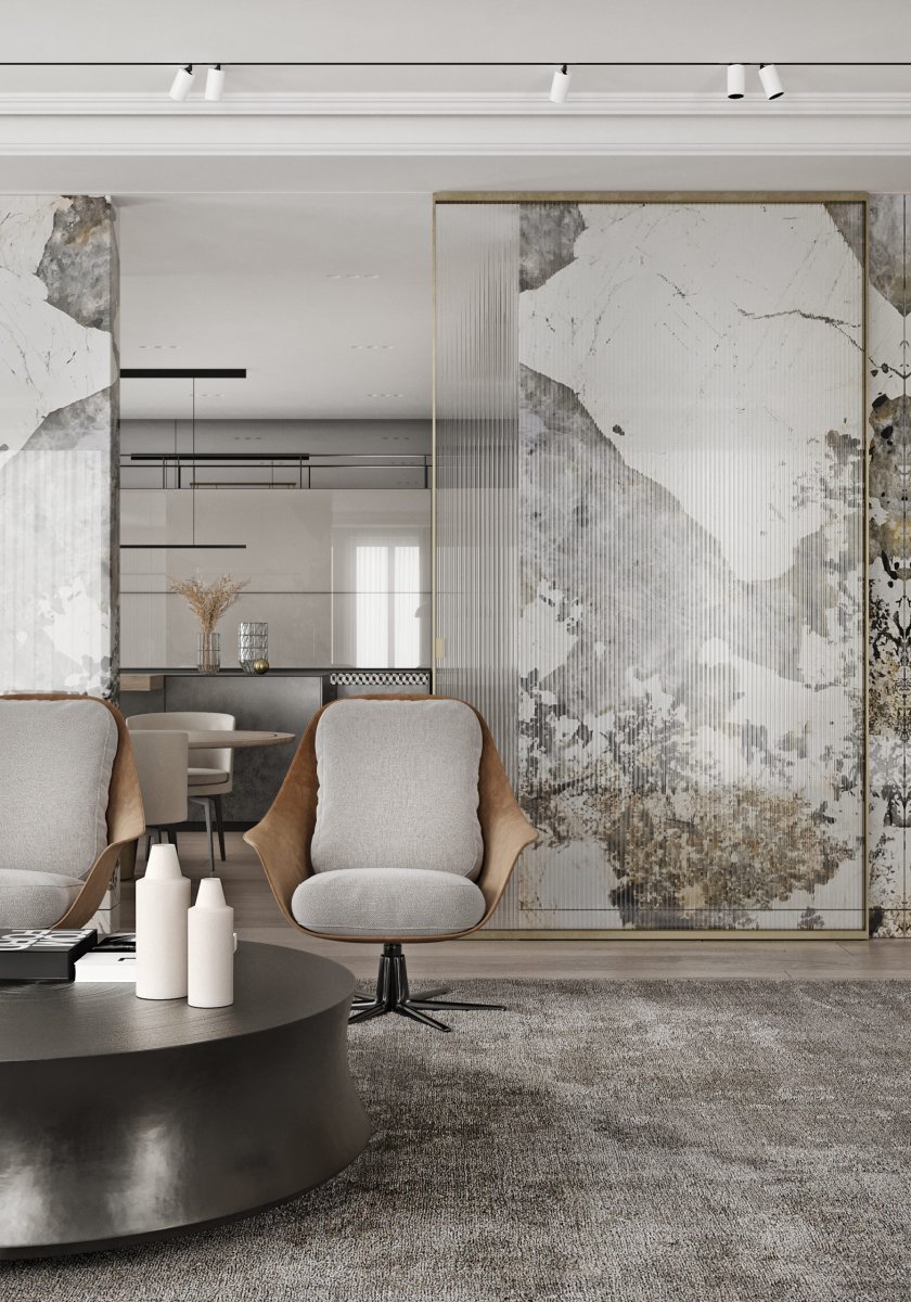 Мраморная стена в гостиной