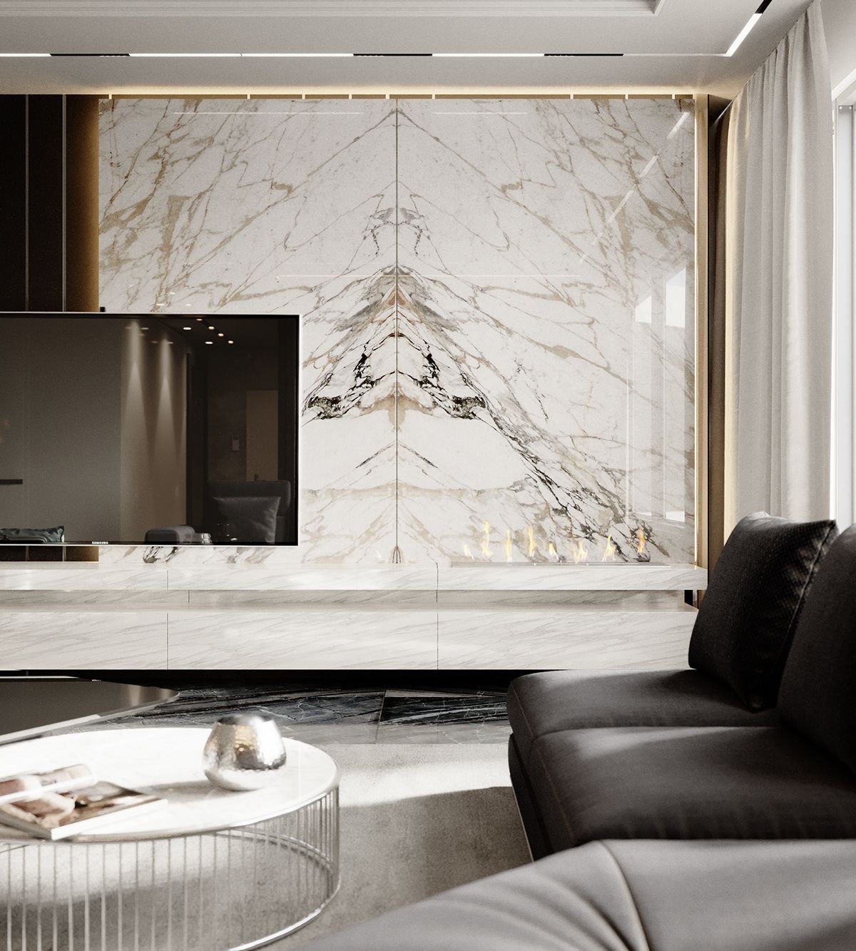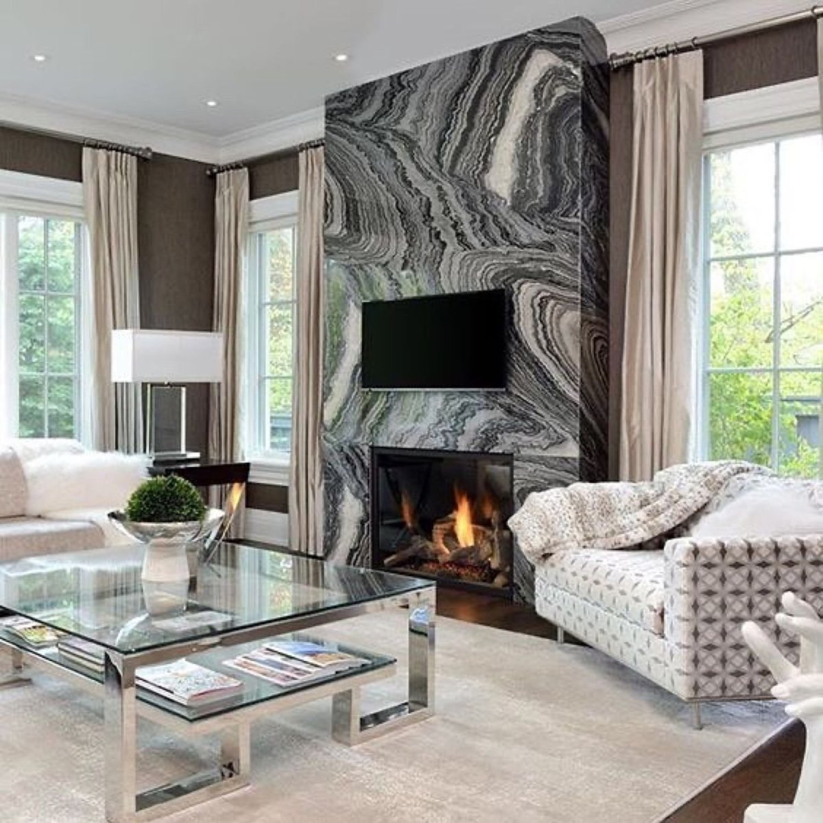 Камин в мраморе современный интерьер