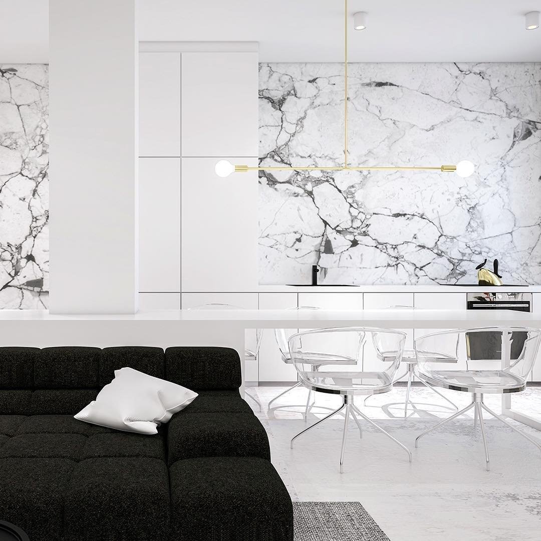 Мрамор в интерьере кухни