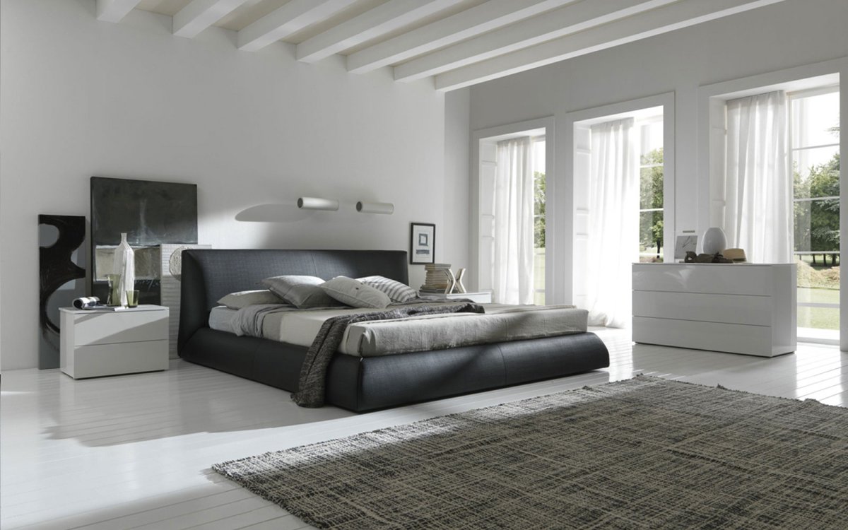 Черно белая мебель в спальне