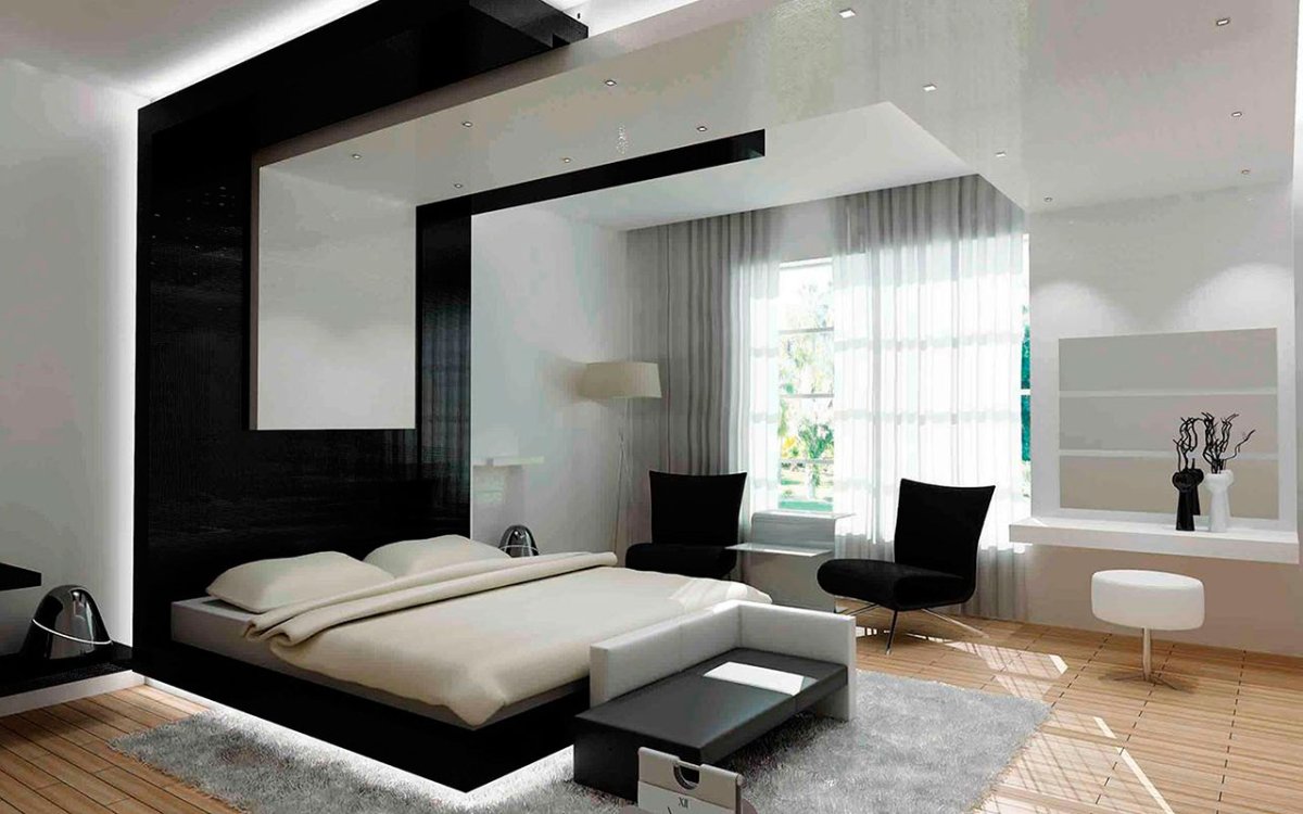 Хайтек спалня в черном стиле