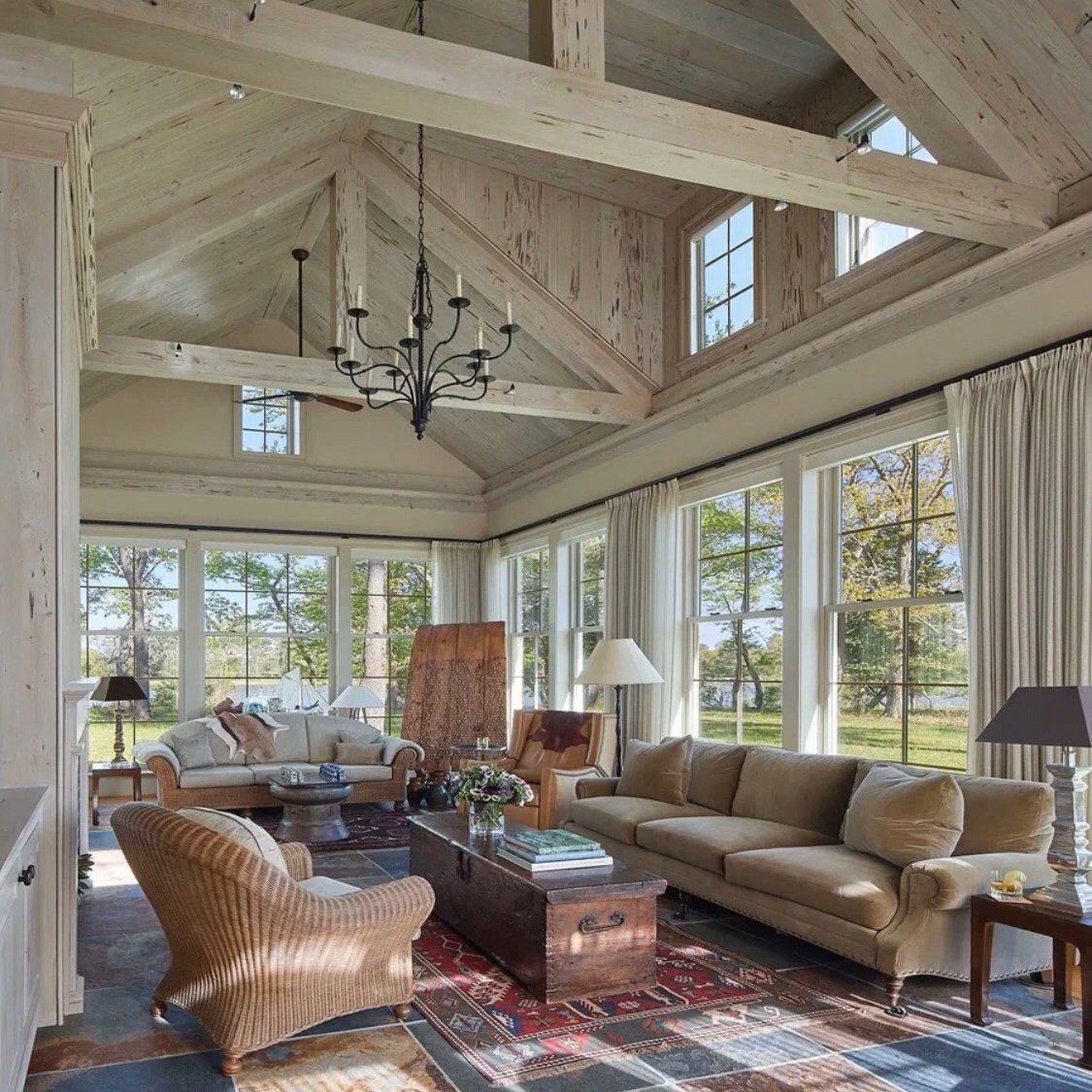 Деревянные потолки в интерьере загородного дома