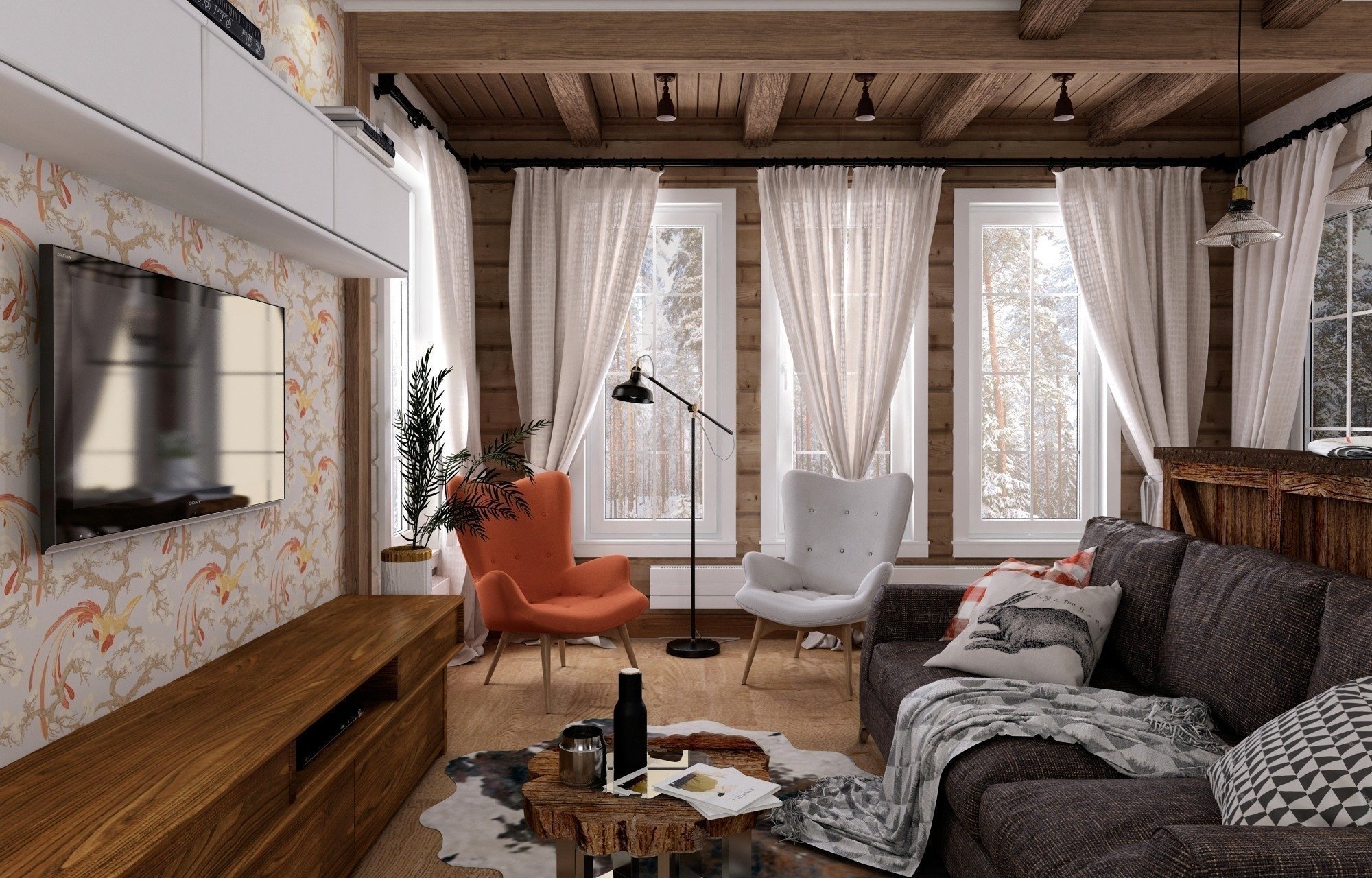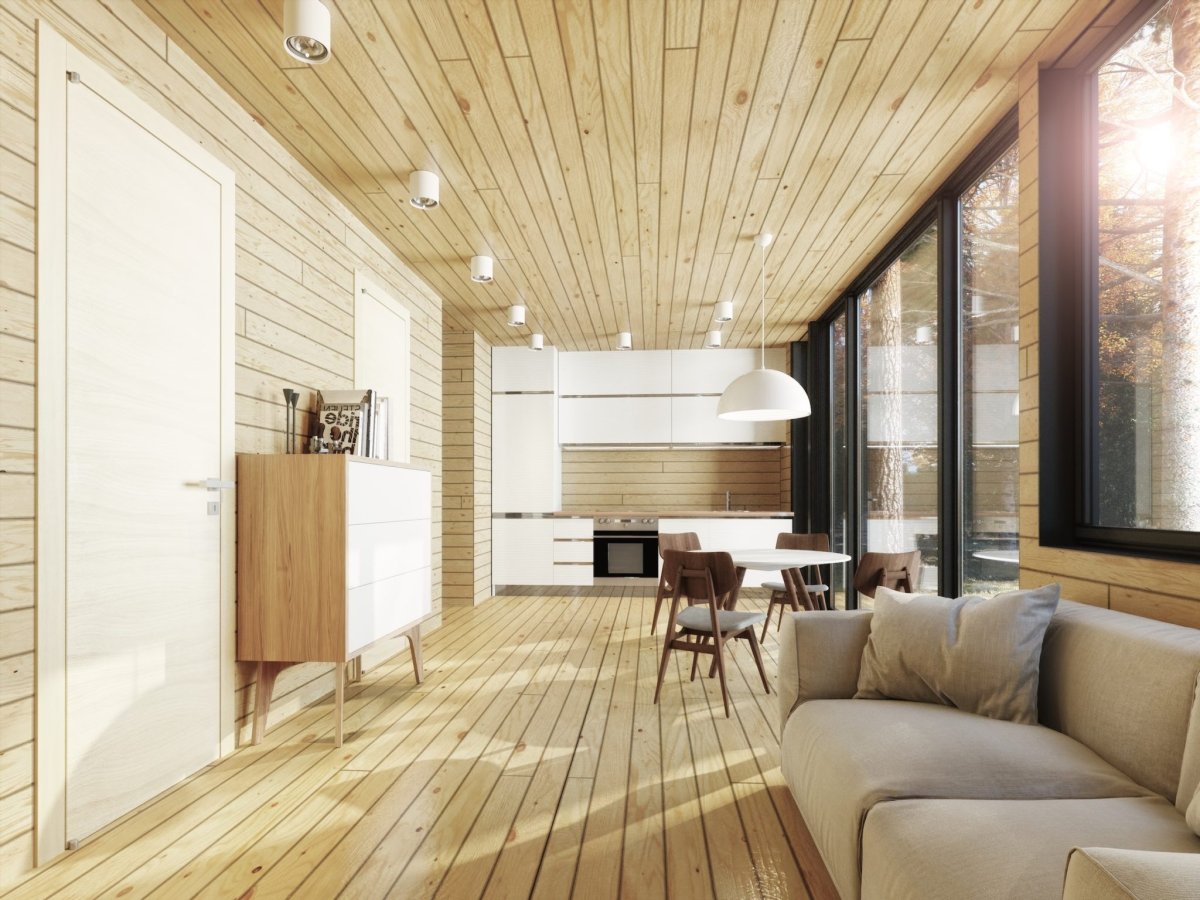 Интерьер в скандинавском стиле в деревянном доме