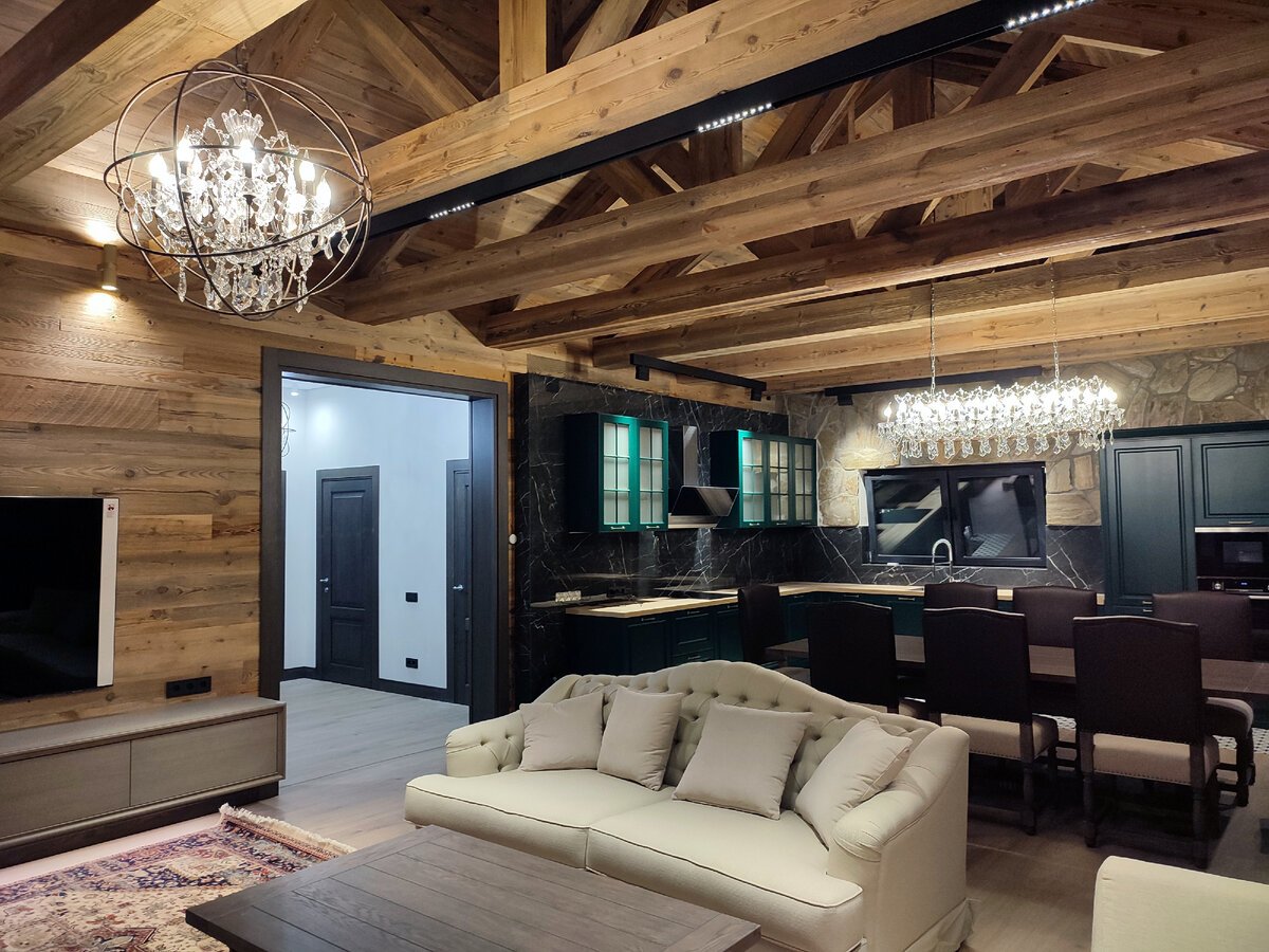 Интерьер дома из клееного бруса в стиле Шале
