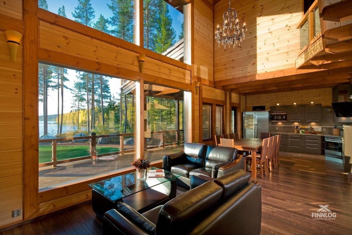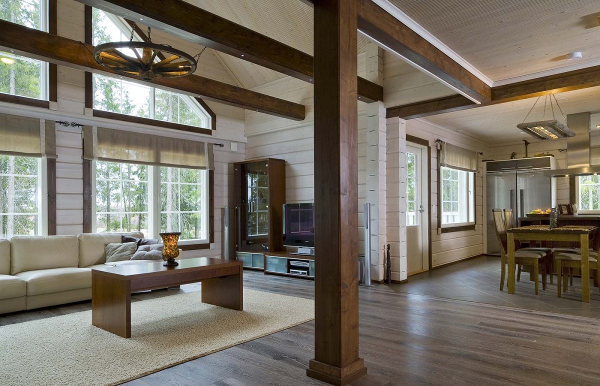 Интерьеры одноэтажных домов из клееного бруса