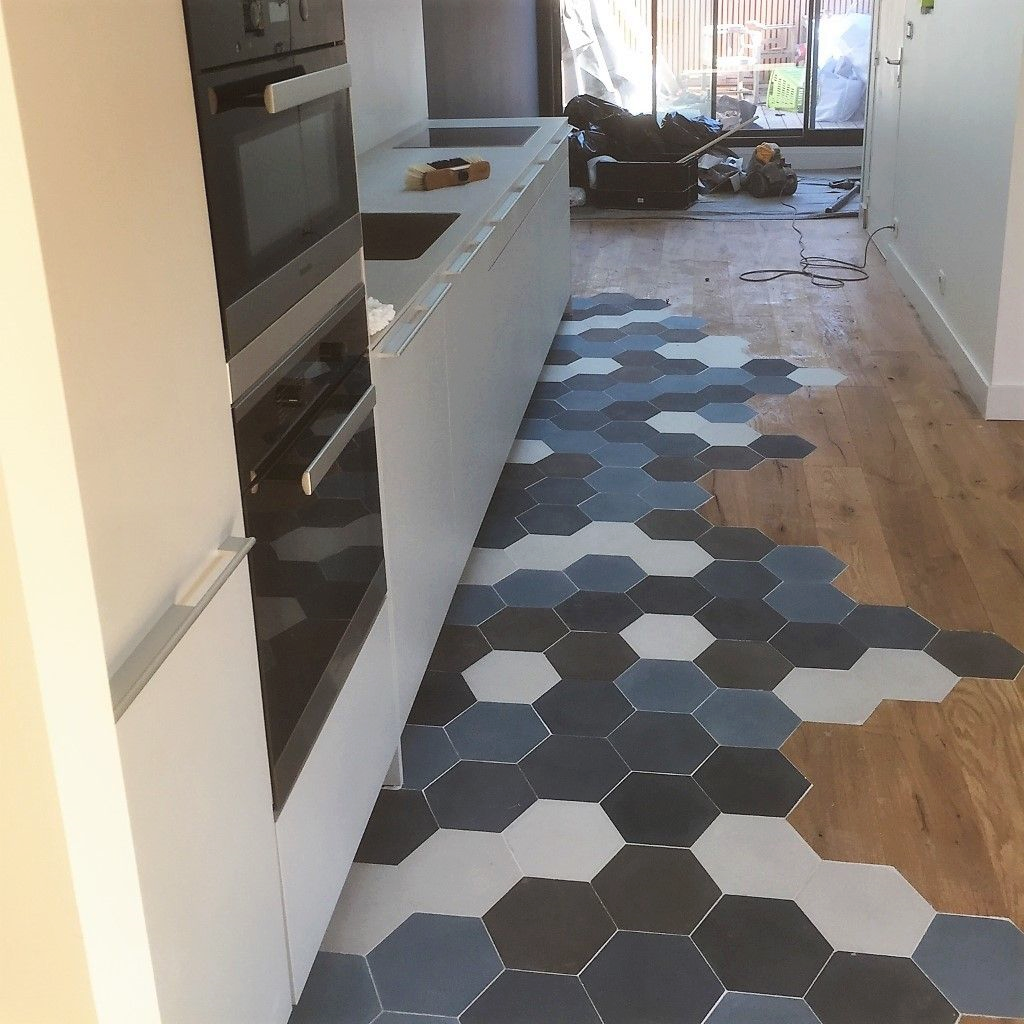 Шестигранная плитка на кухне