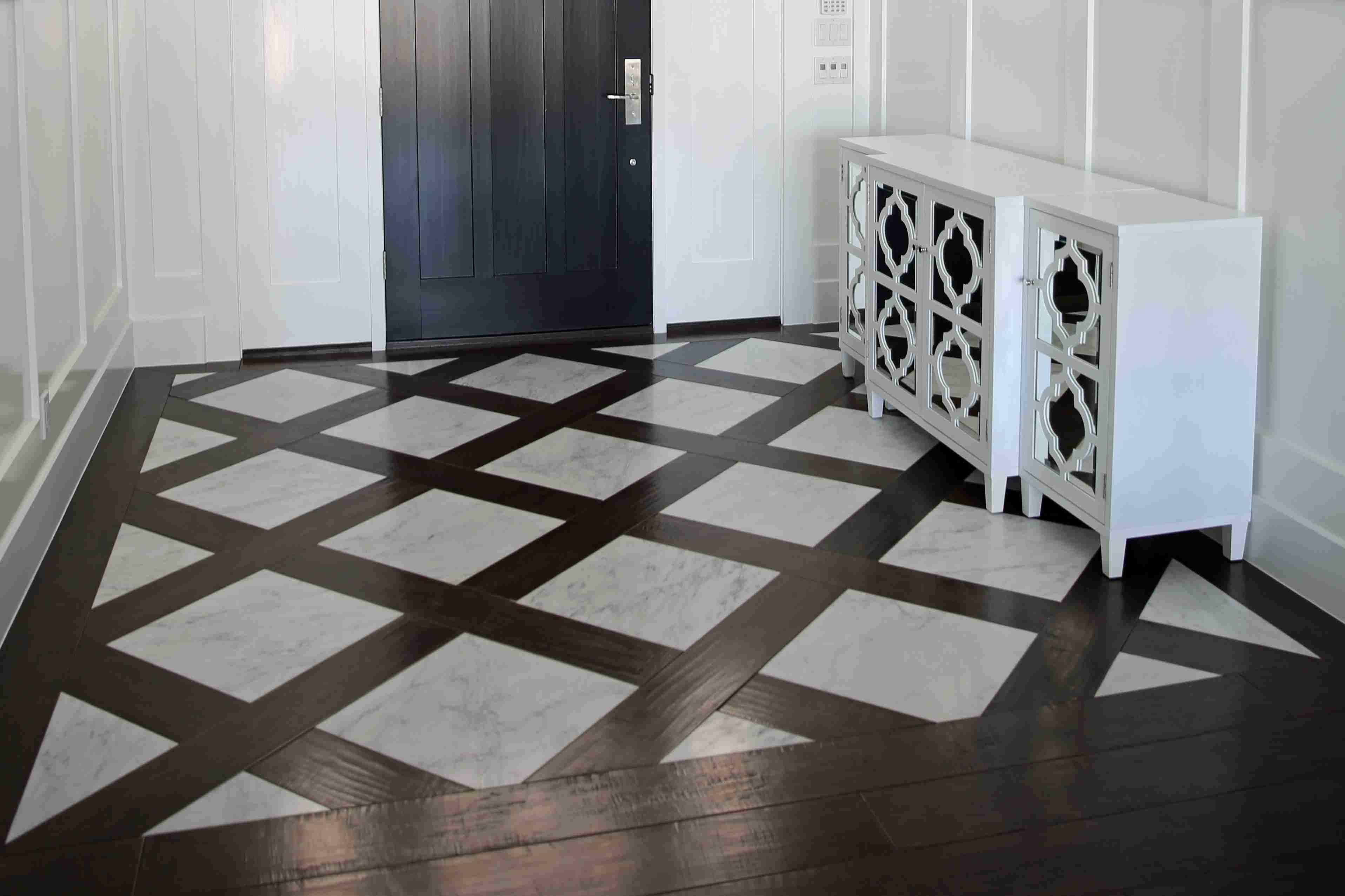 Мраморная плитка в прихожей с ламинатом
