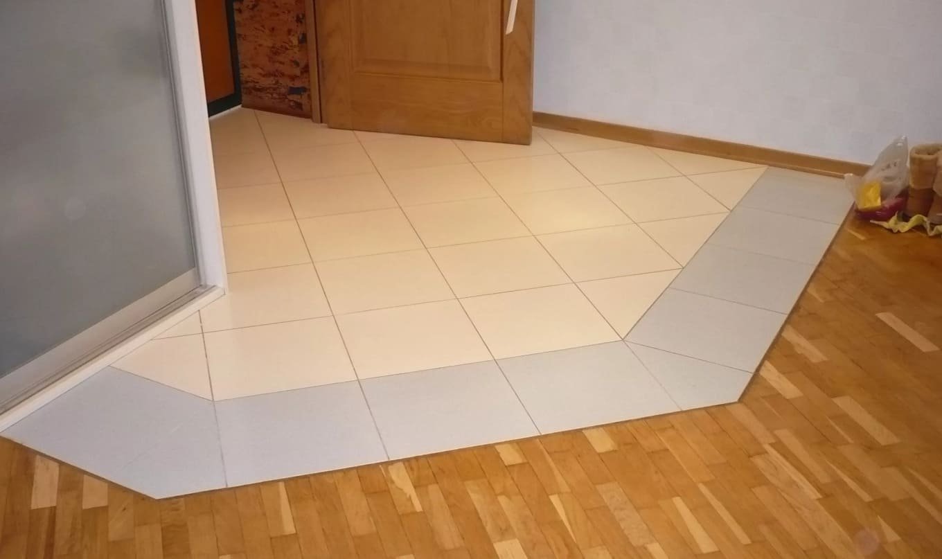 Сочетание плитки и паркета