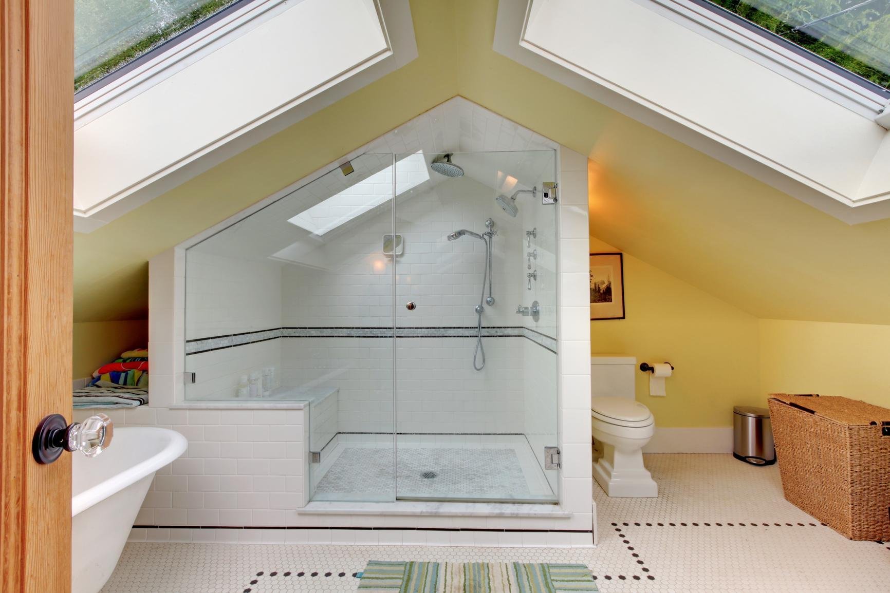 Душевая кабина на мансардном этаже