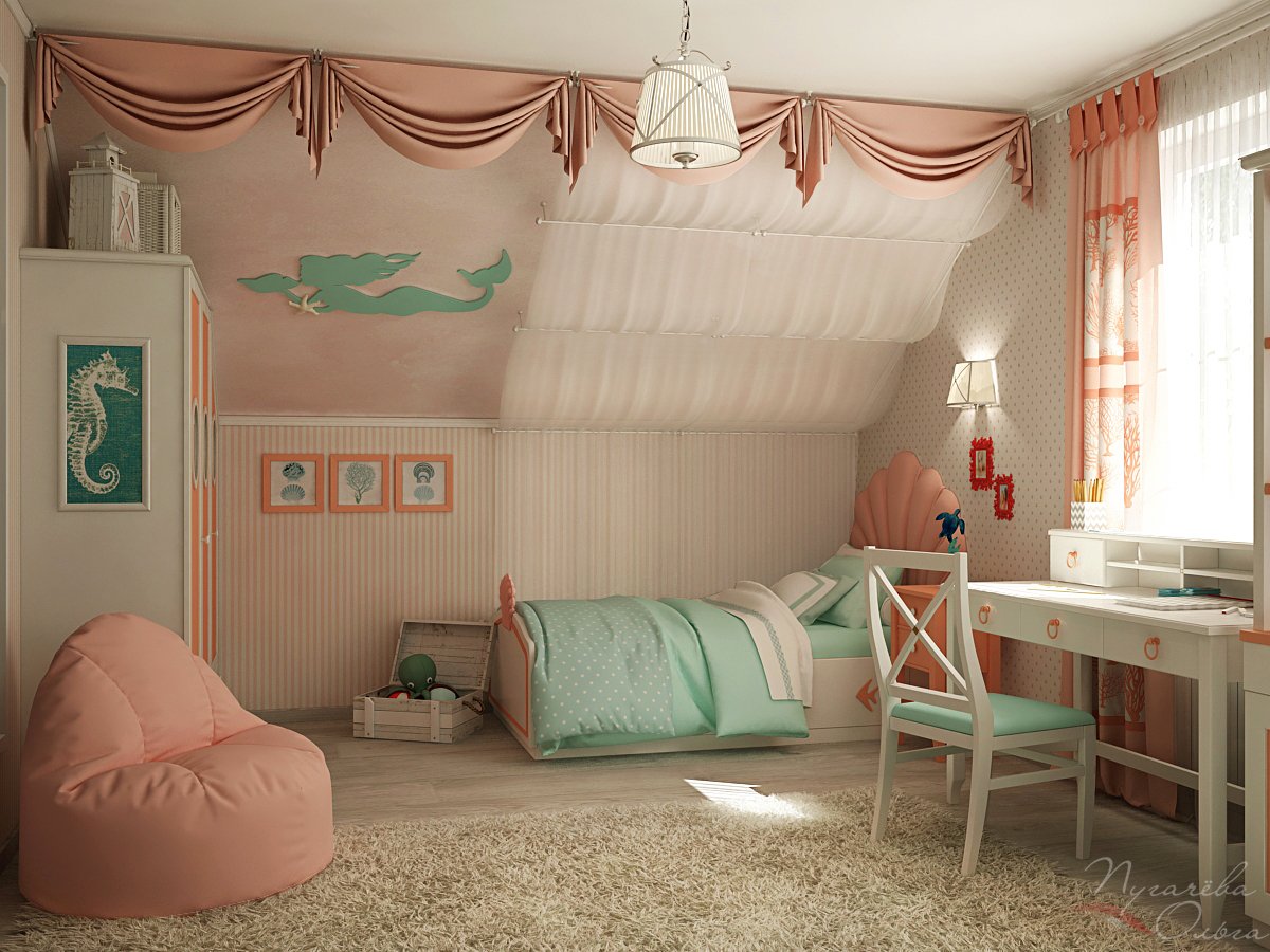 Комната для девочки на мансарде