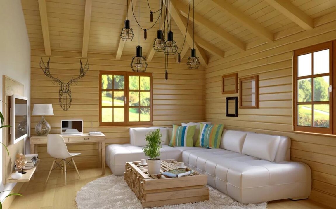 Интерьеры в домах из клееного бруса в скандинавском стиле