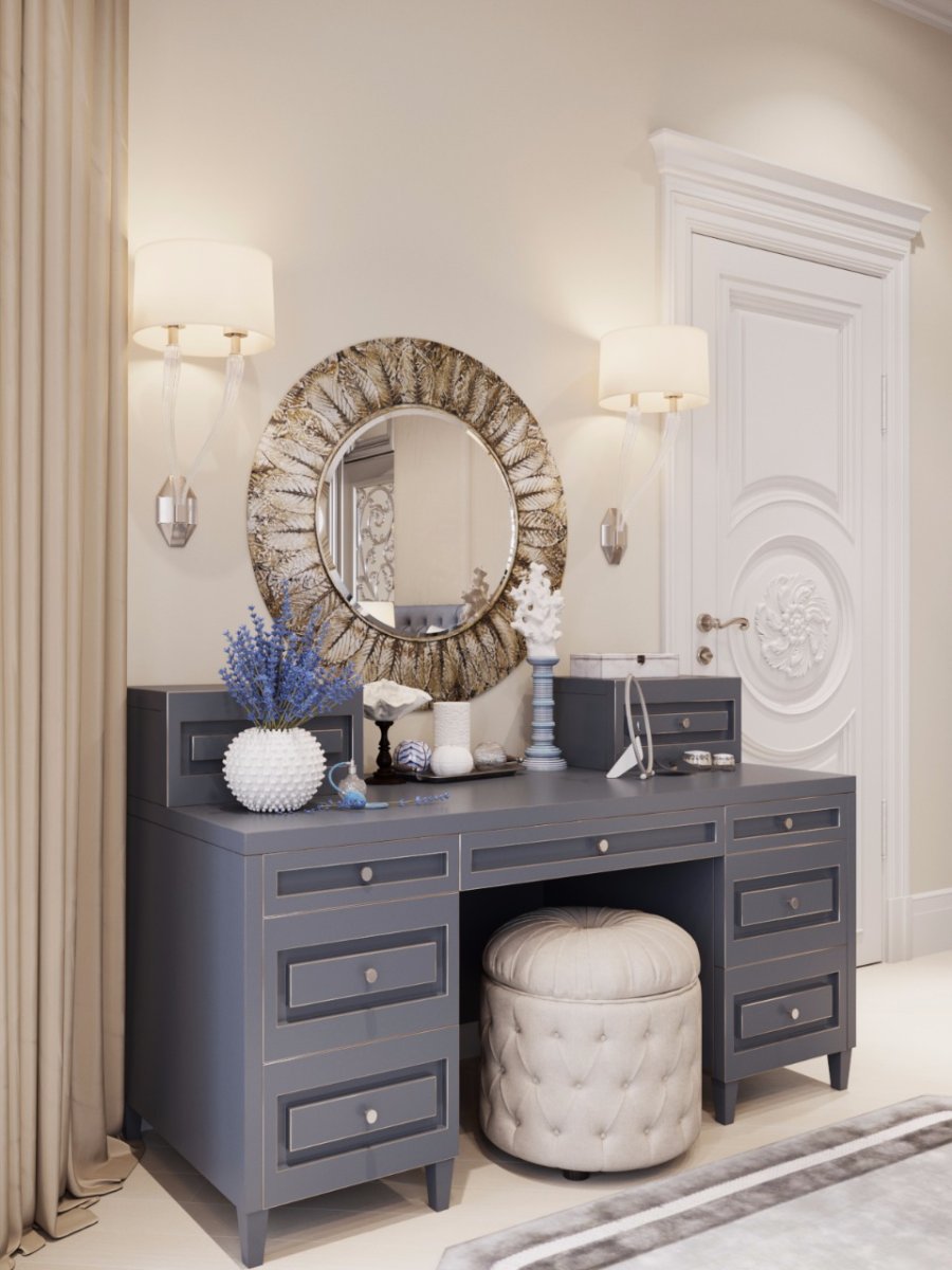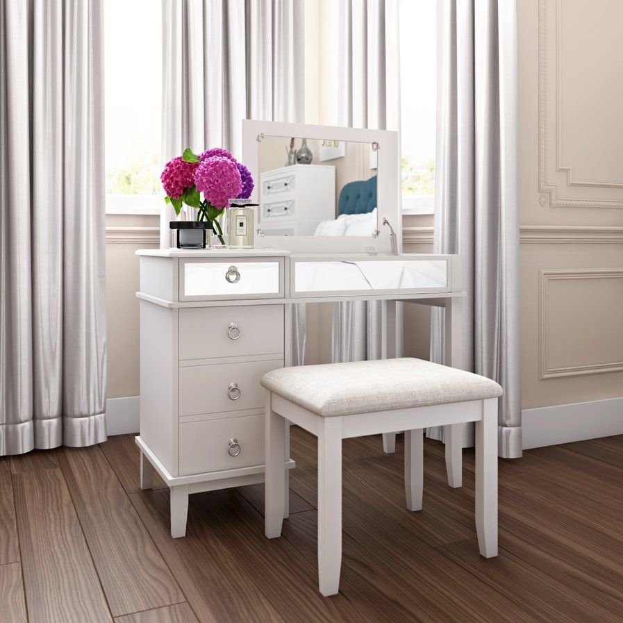 Туалетный столик Dressing Table & Stool Set Makeup Vanity led Mirror Organizer Drawers Wood Desk