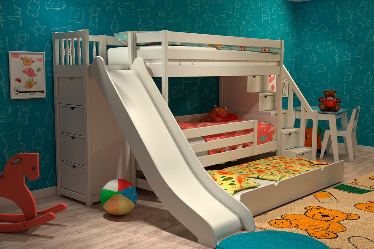 Двухъярусная кровать с горкой