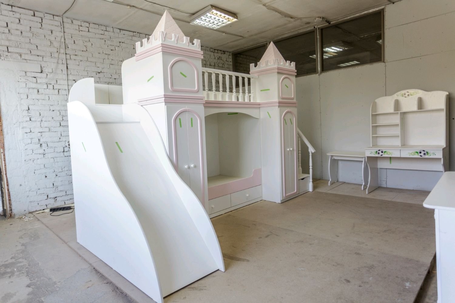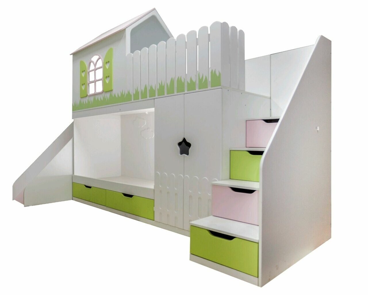 Кровать чердак с горкой для девочки