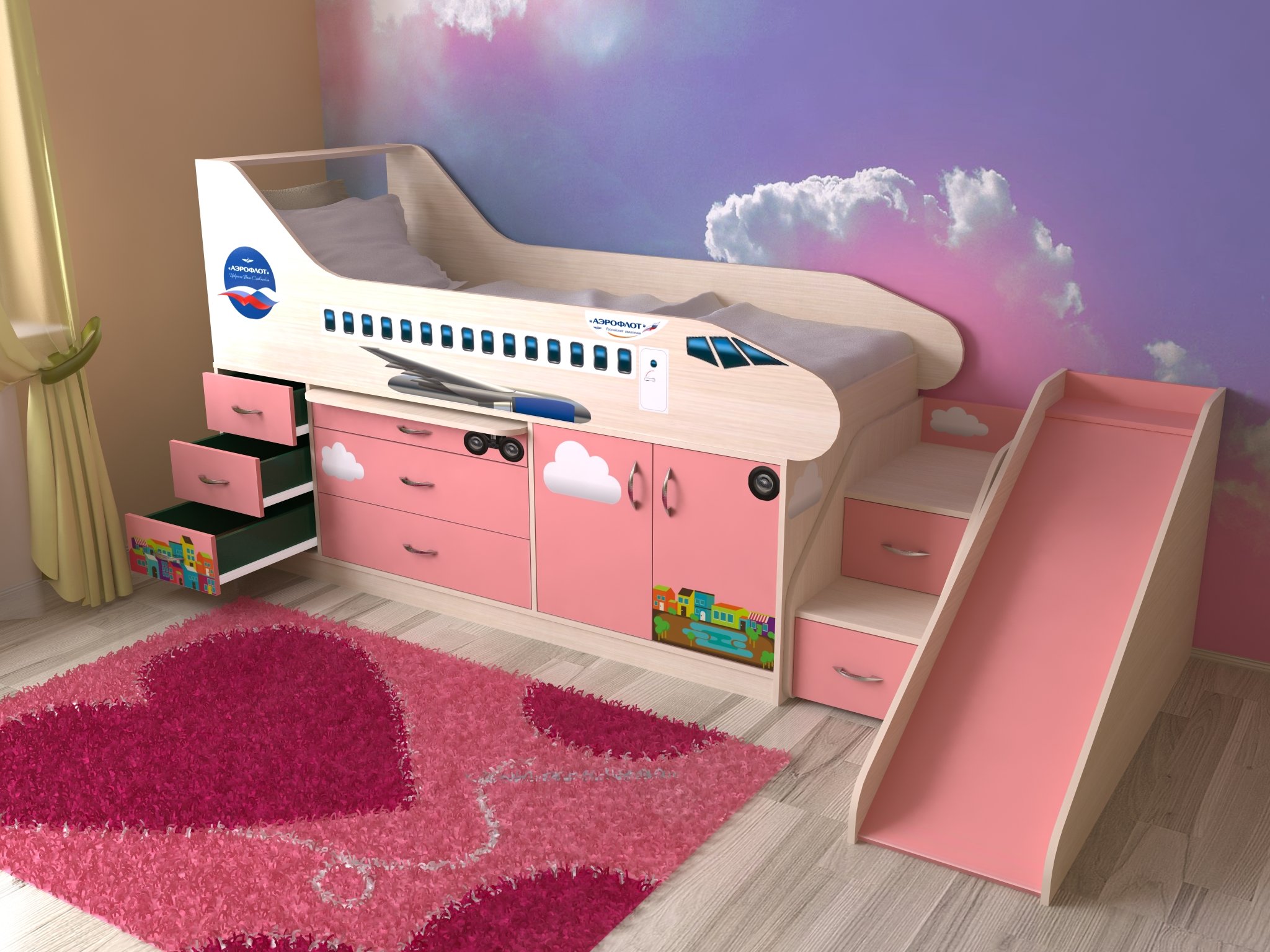Розовая кровать с горкой