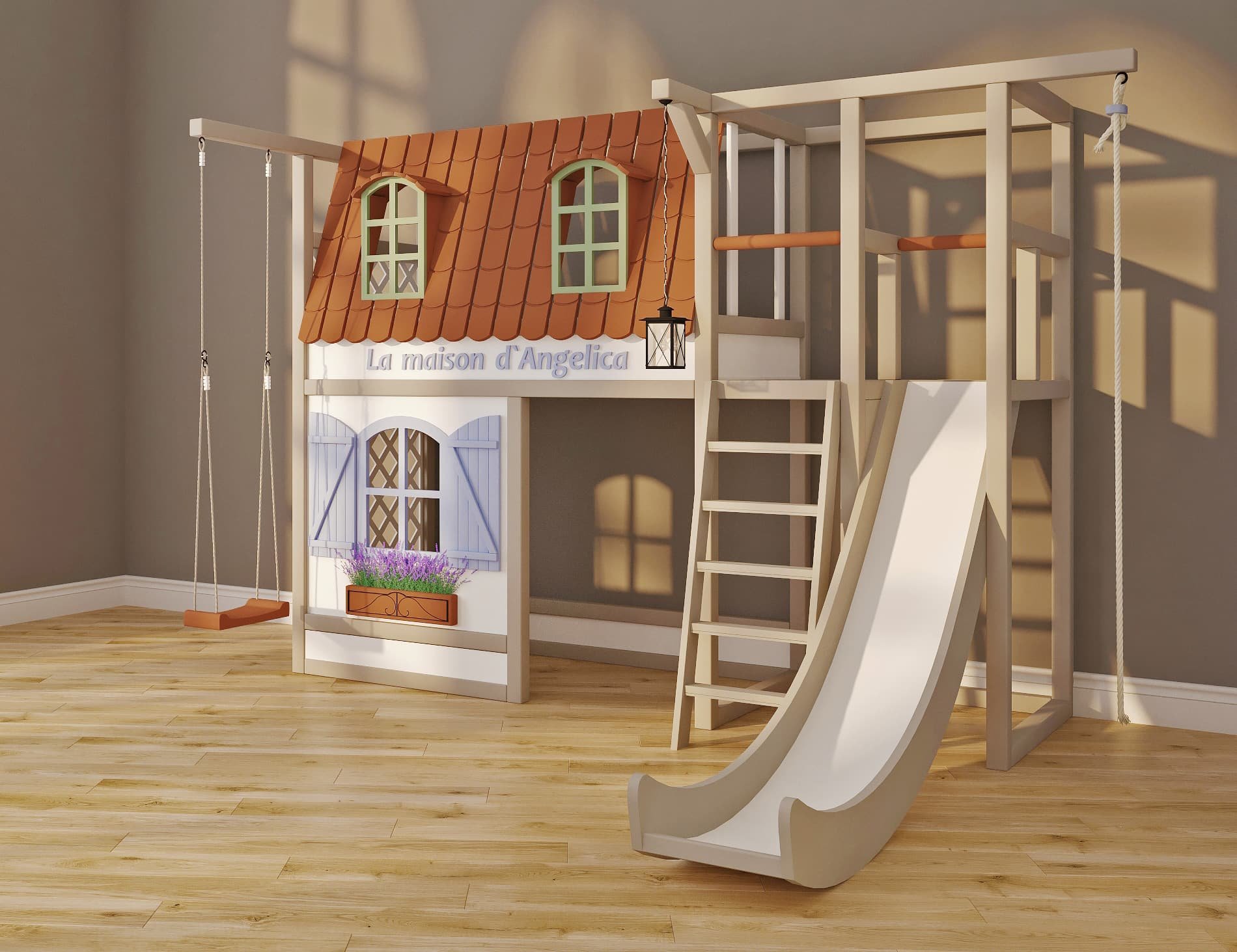 Детская комната с домиком и горкой