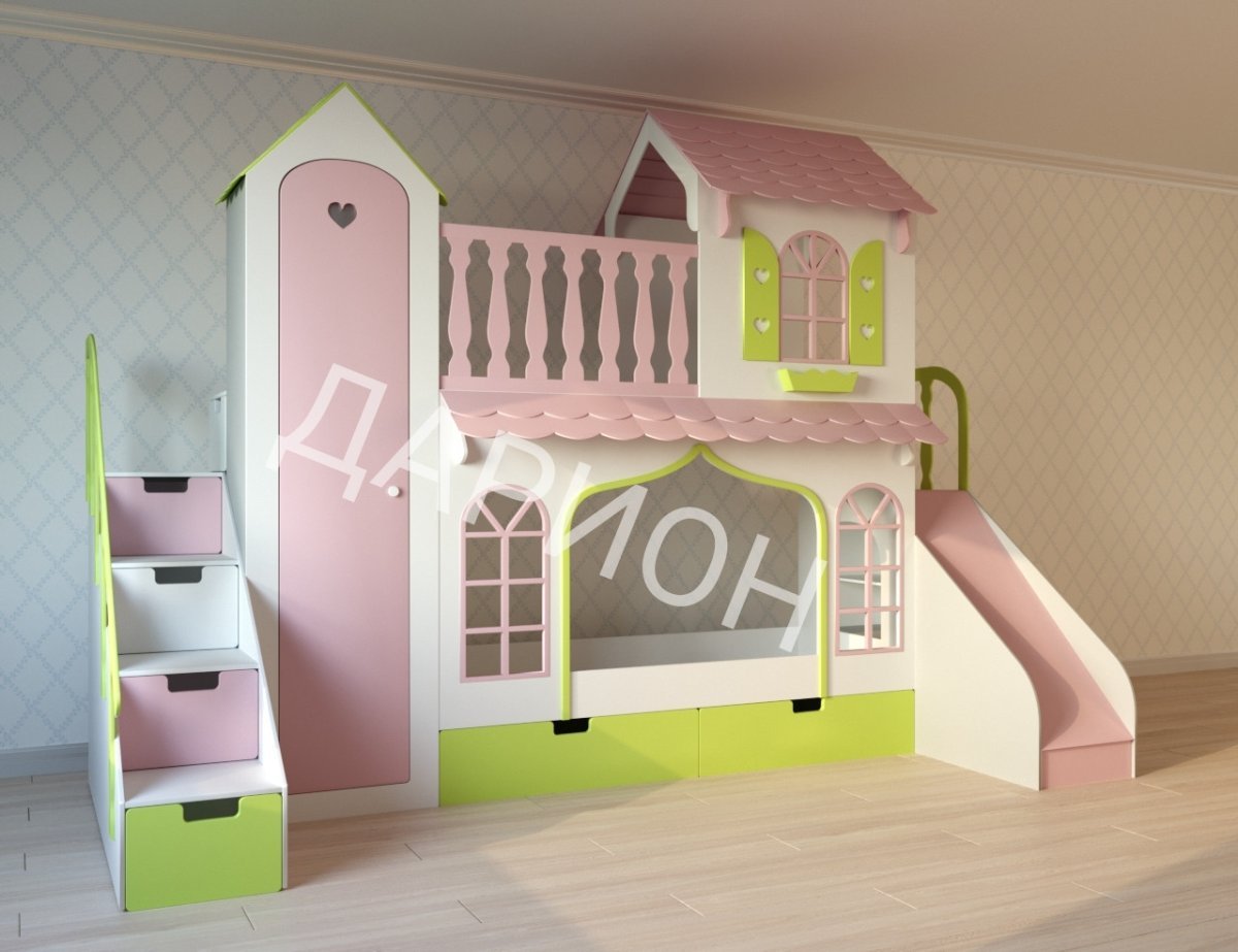 Кровать для девочек с горкой