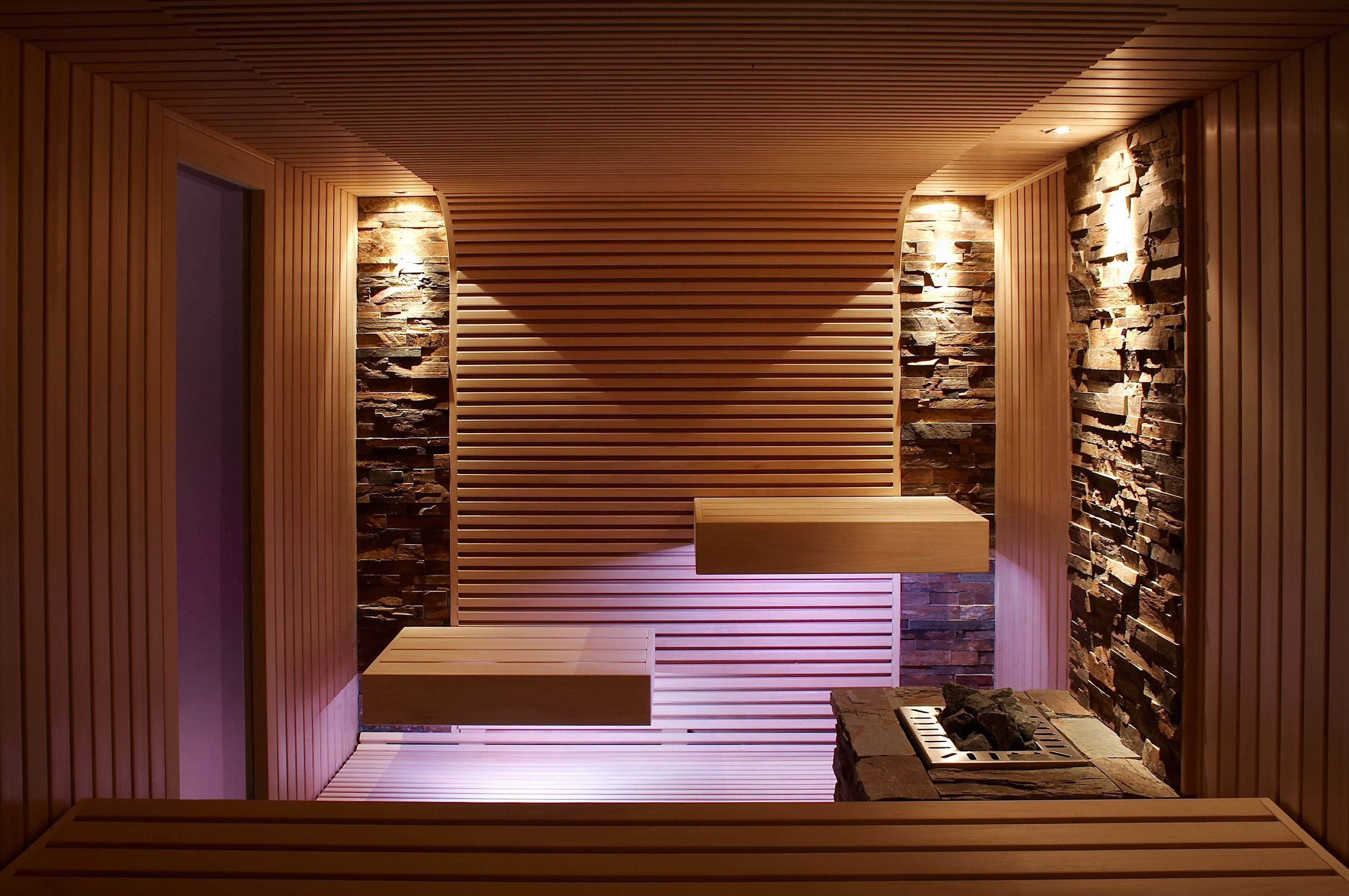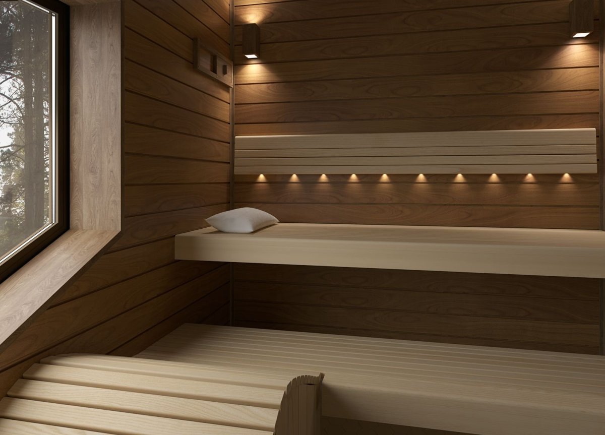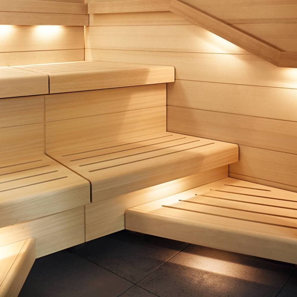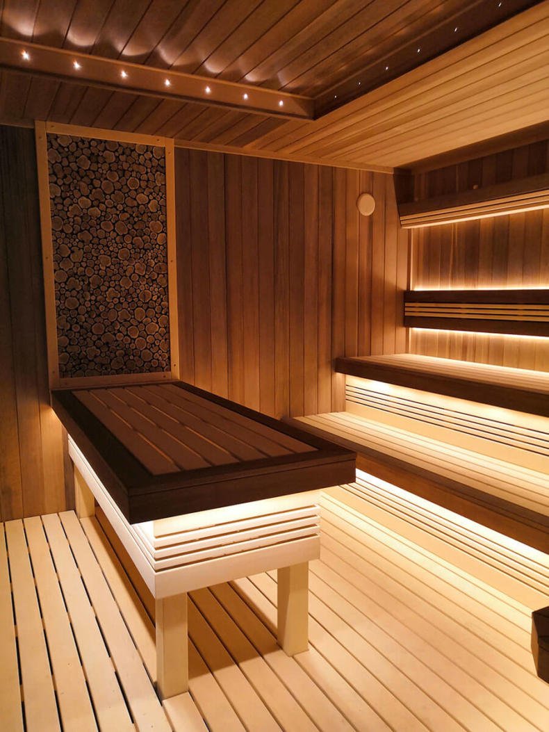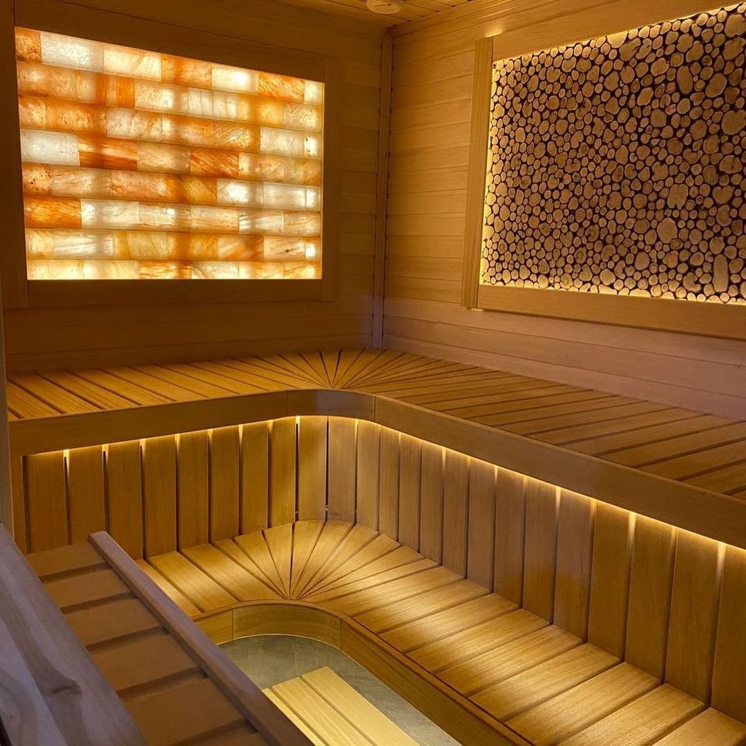 Современное красивое освещение в сауне