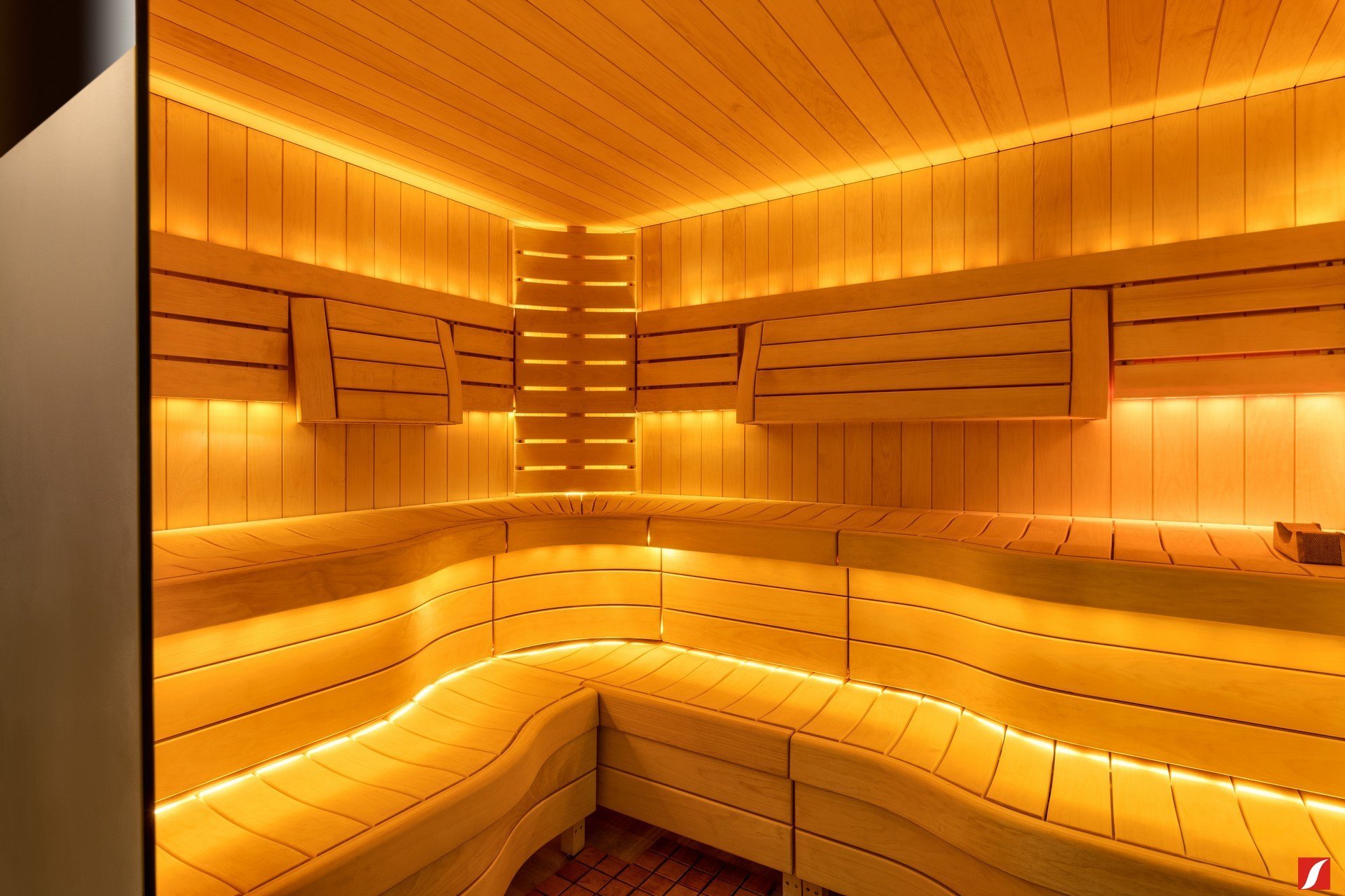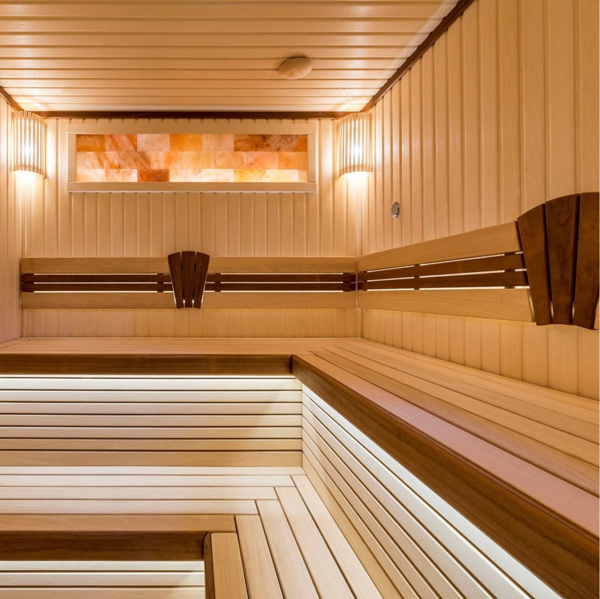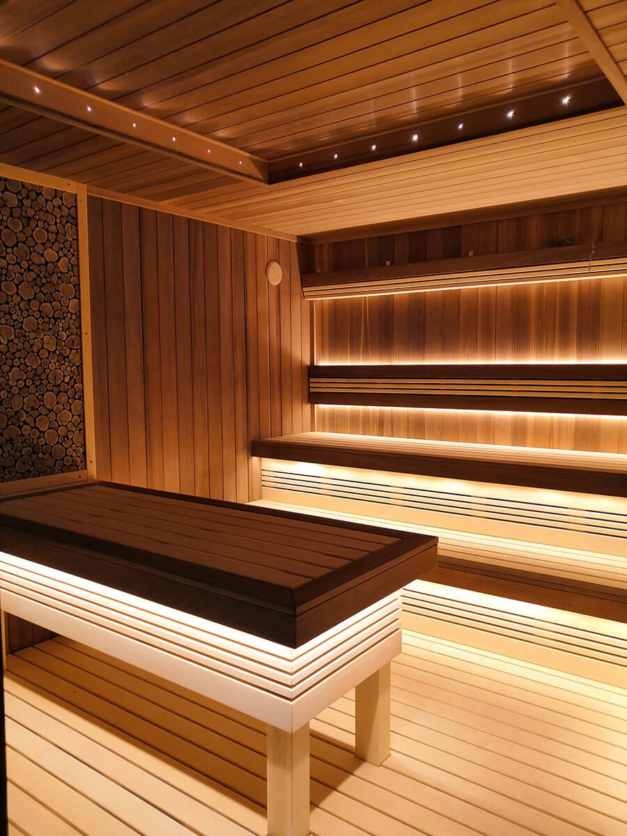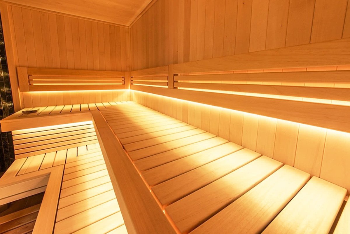 Современное красивое освещение в сауне