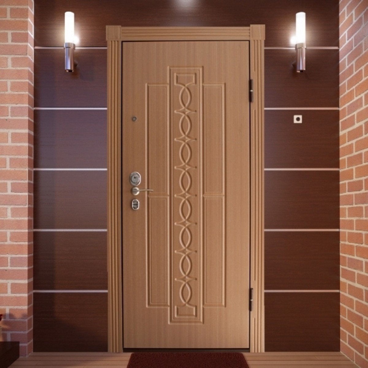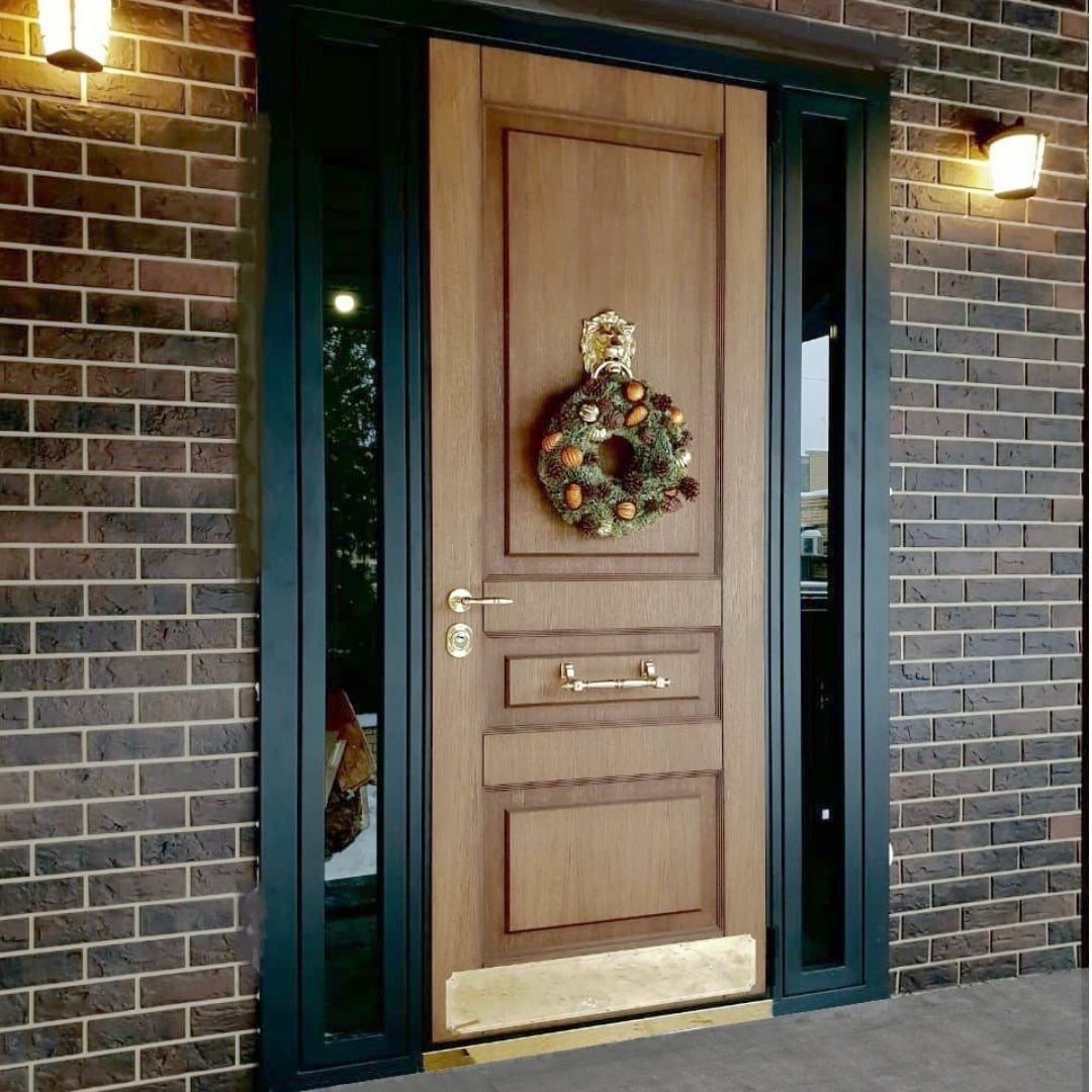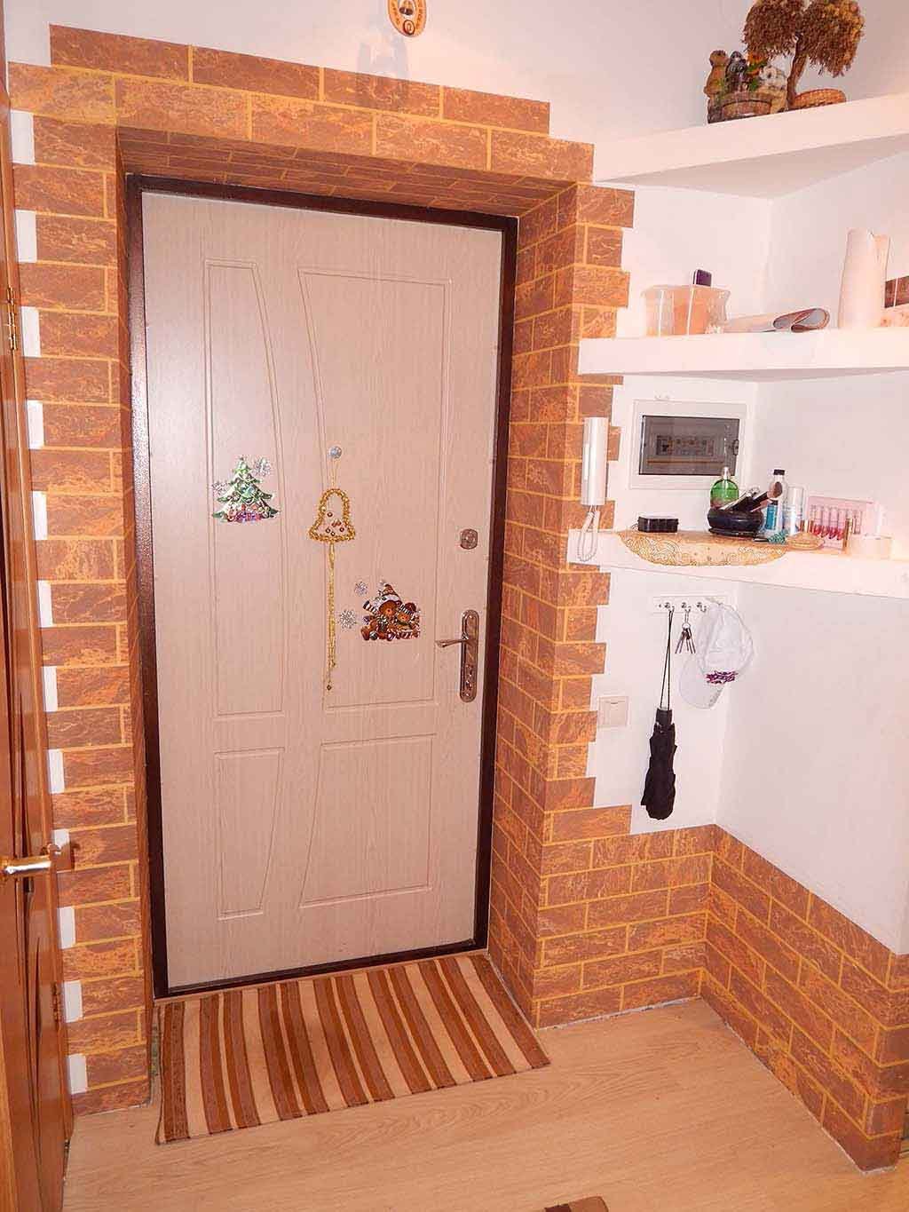 Входная дверь обшитая кирпичом декоративным
