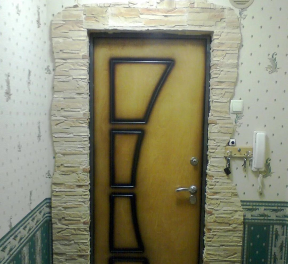 Отделка дверей декоративным камнем